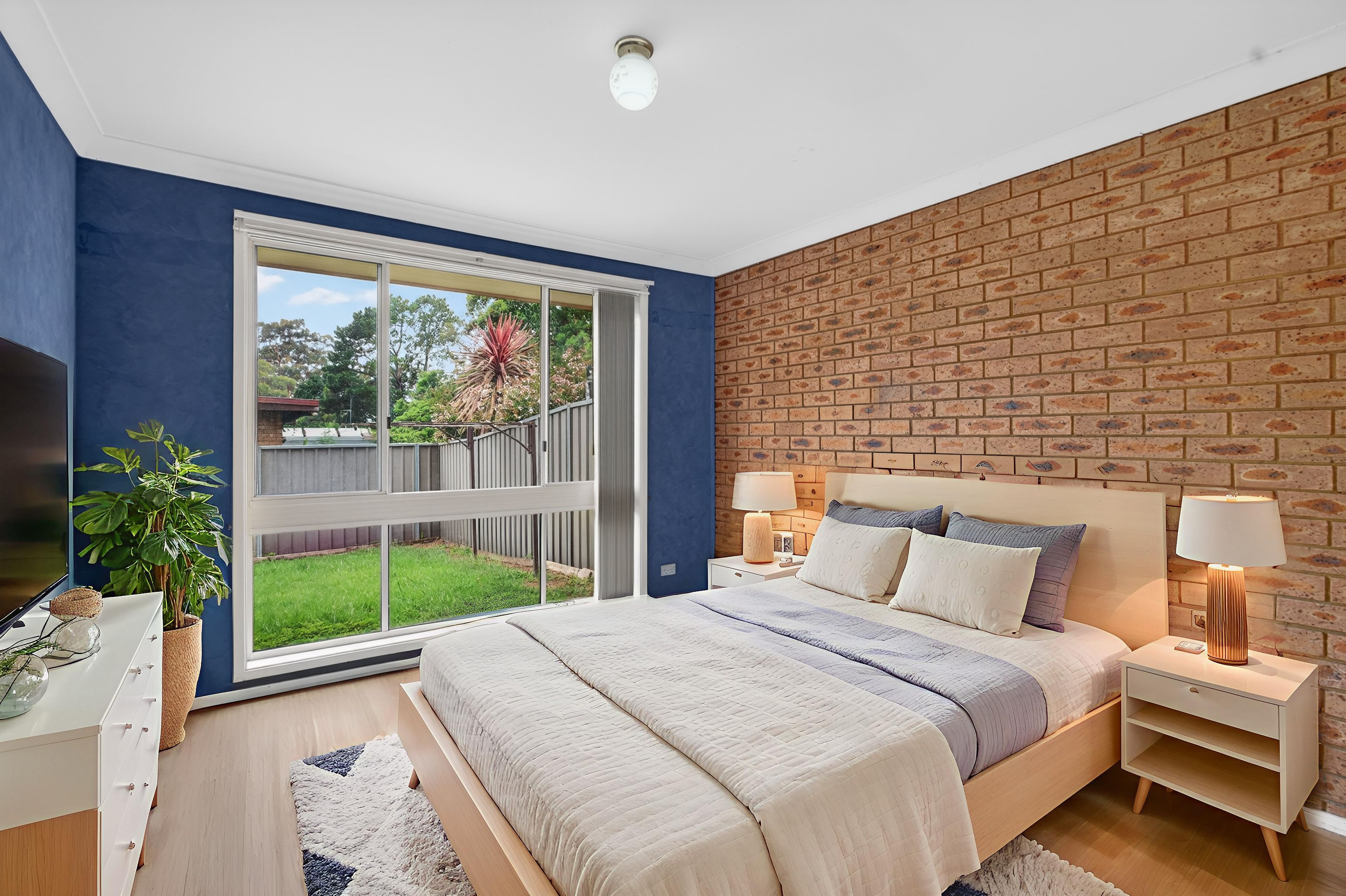 - Two bedrooms with built-in wardrobes, vertical blinds, and screened windows