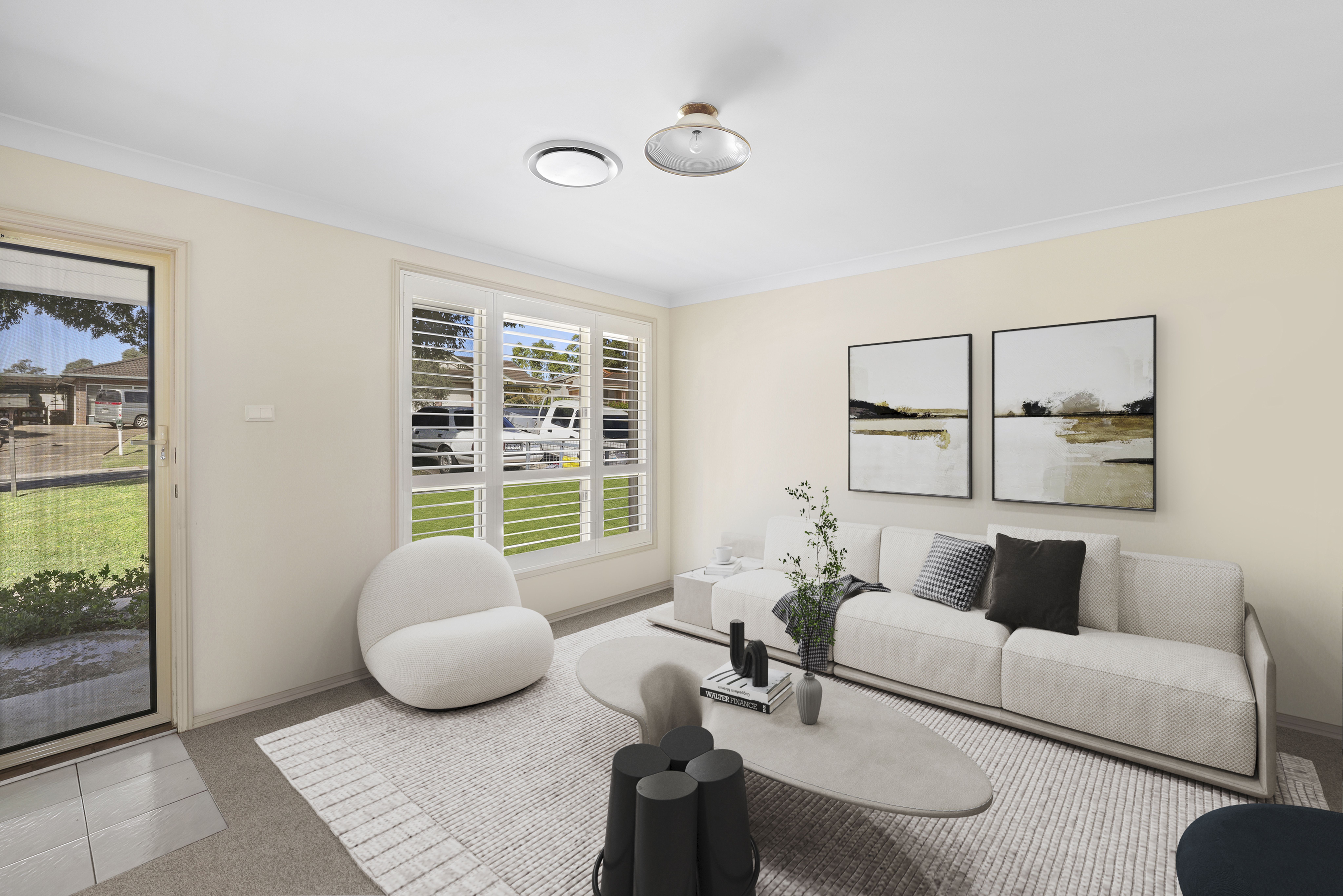 - Formal lounge with plantation shutters located to the front of the home