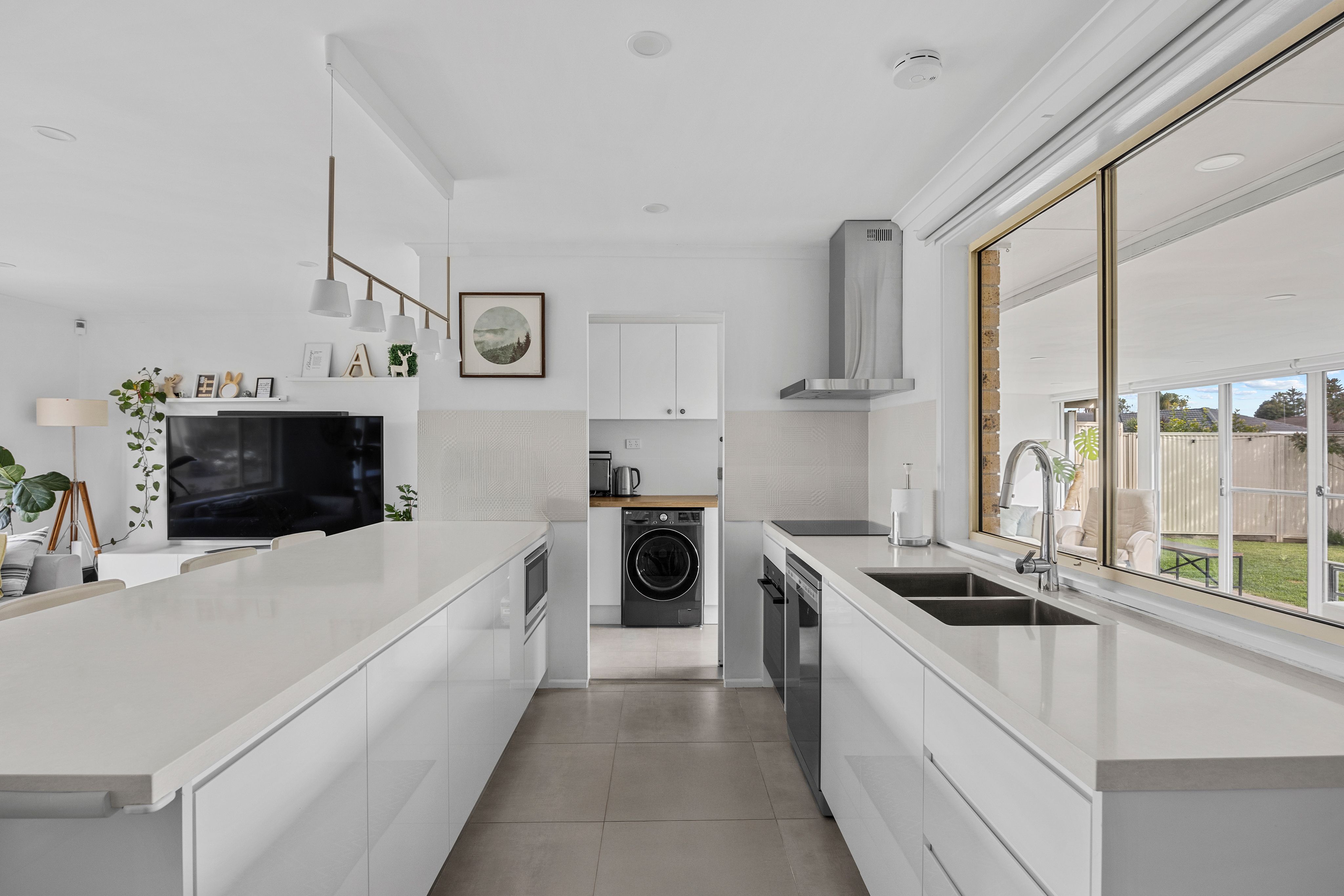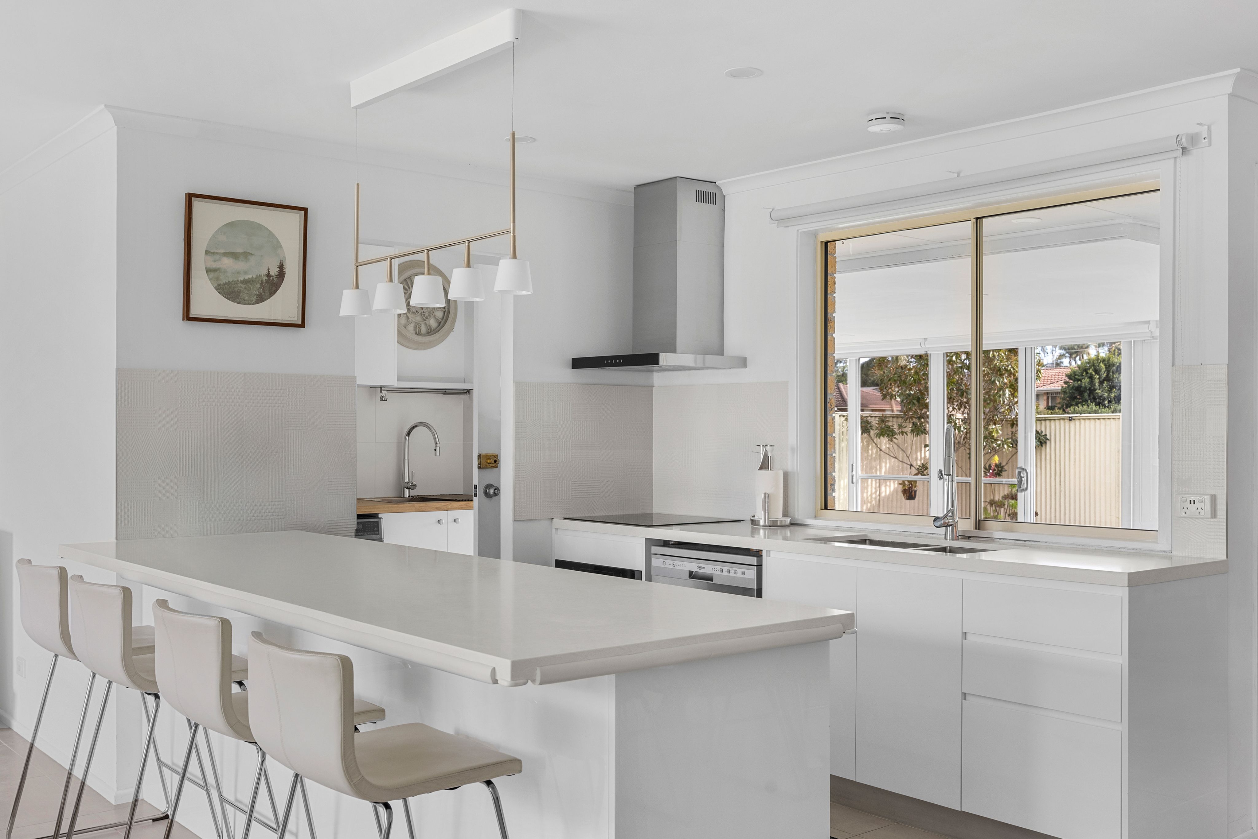 - A brand-new designer kitchen boasting elegant stone benchtops, sleek polyurethane cabinetry, soft-close drawers, a built-in dishwasher, and an efficient induction cooktop.