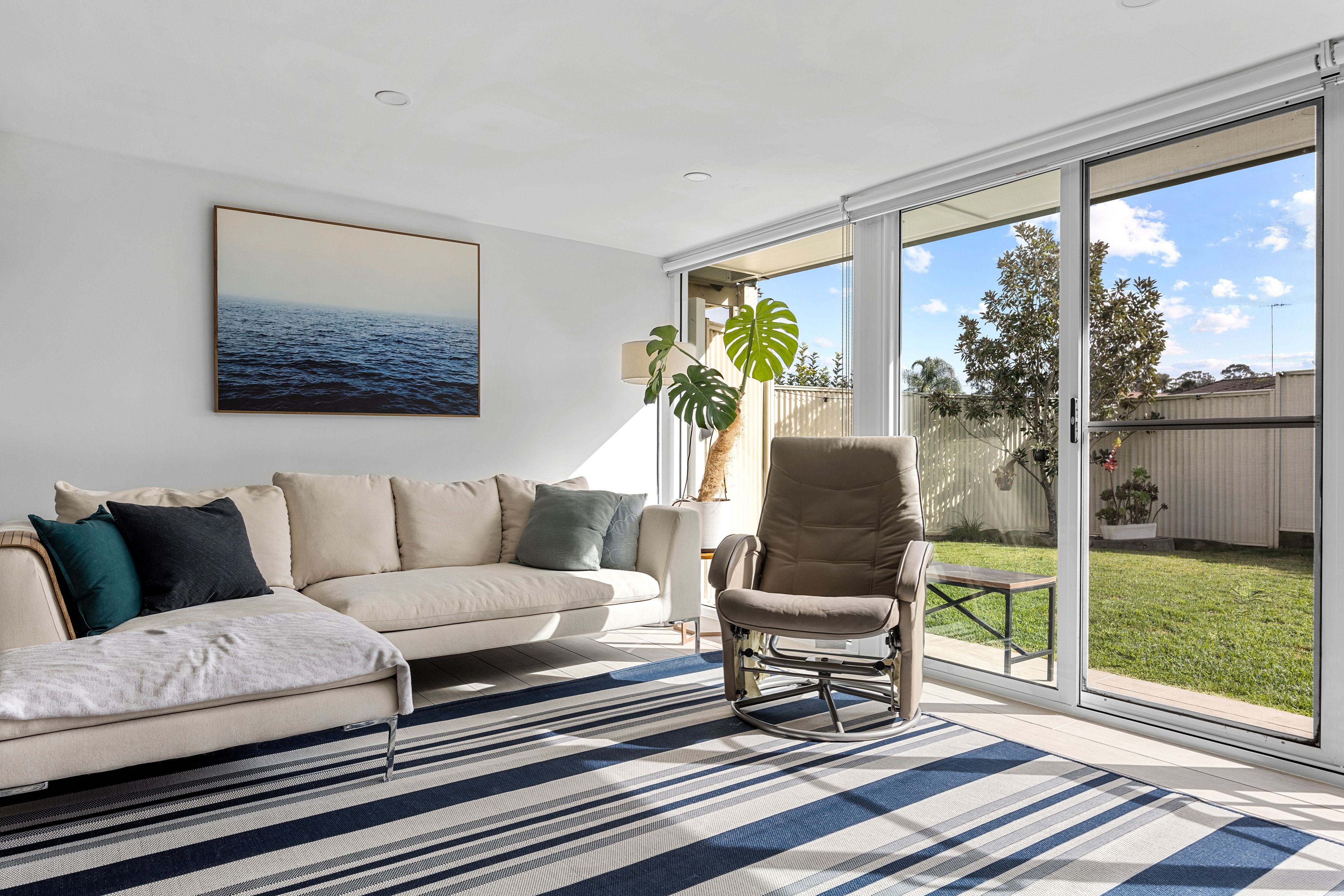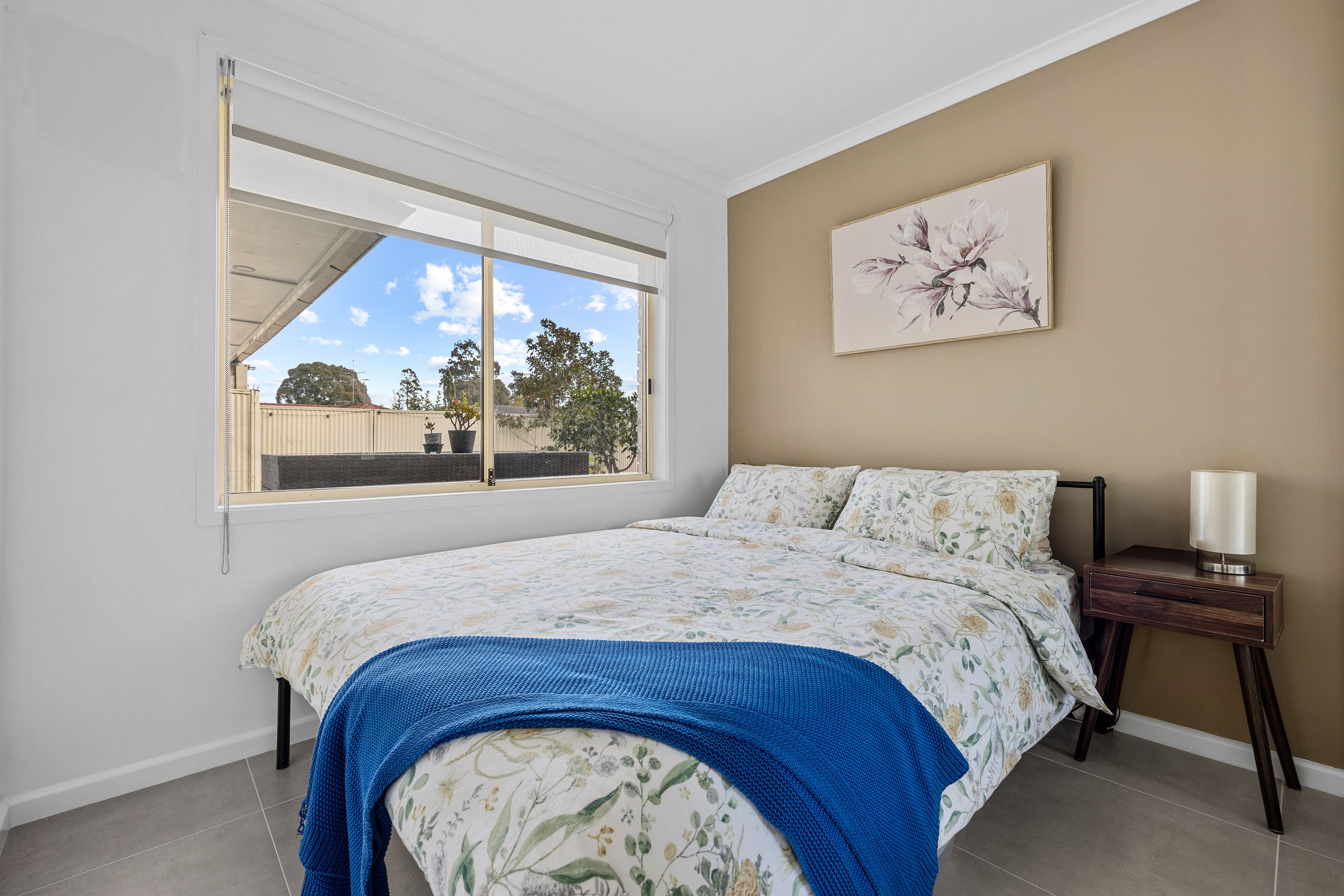 - The landscaped backyard, side access leading to a secure carport