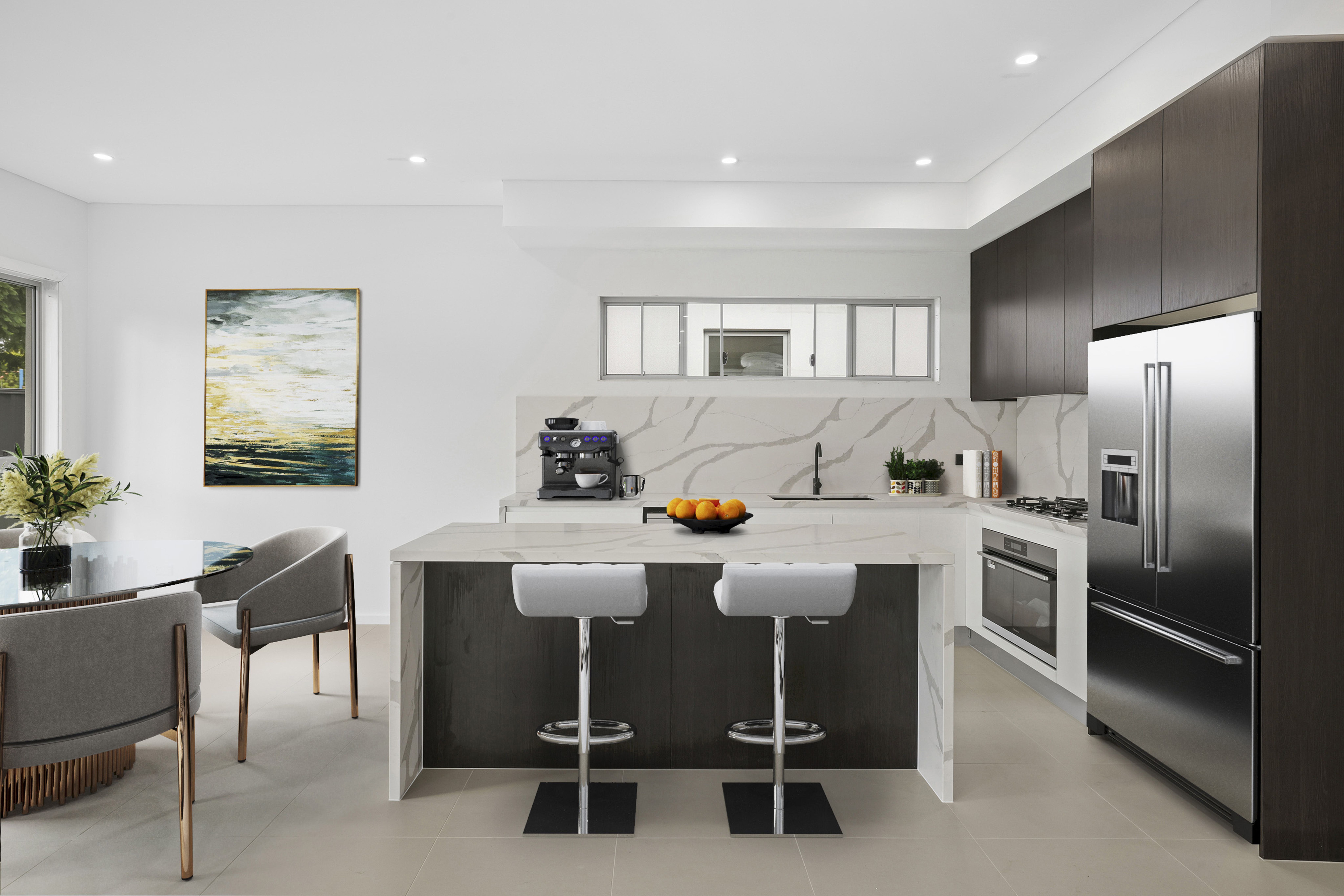 - Stunning chefs kitchen with 40mm stone benchtops and quality appliances