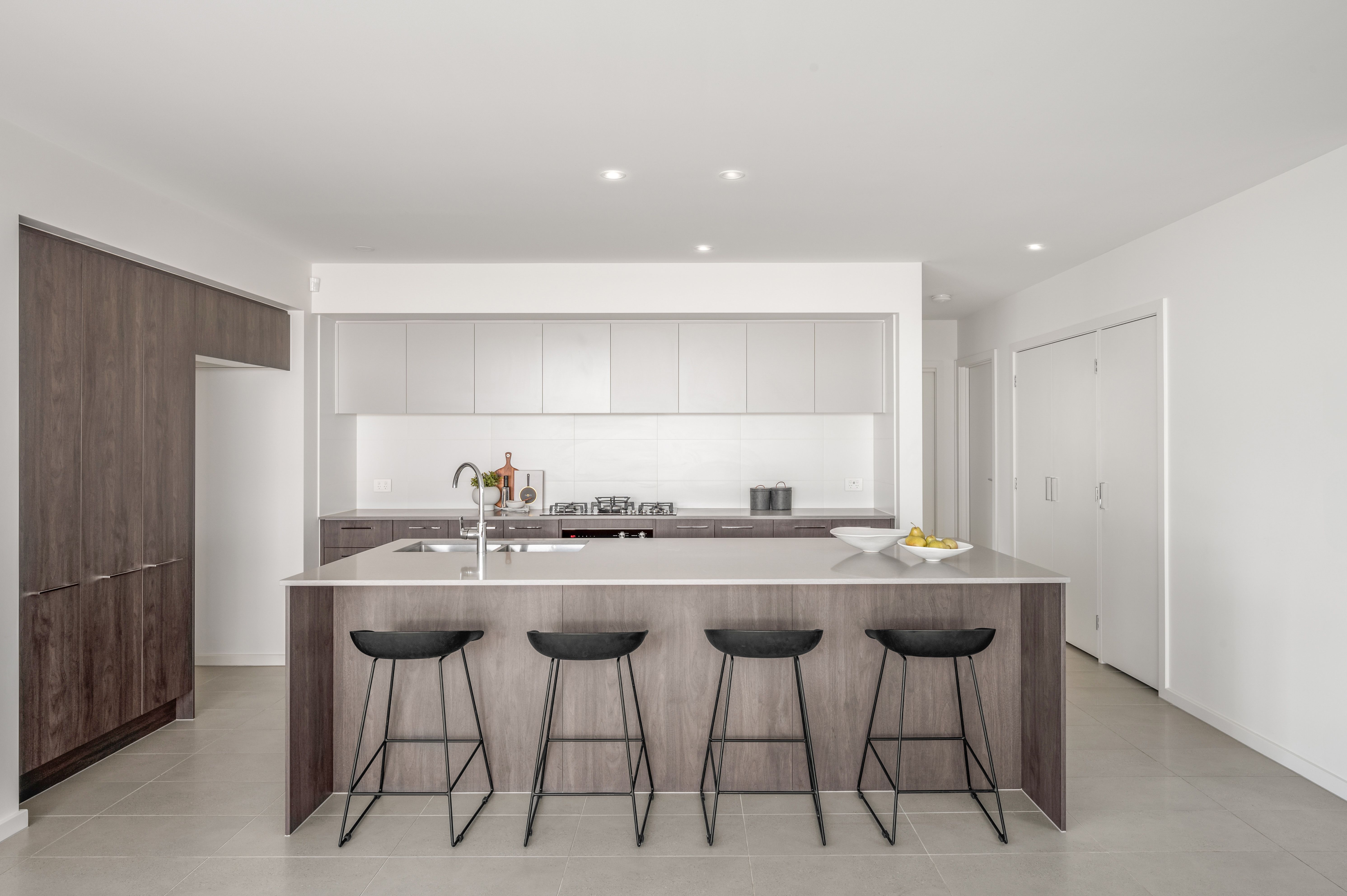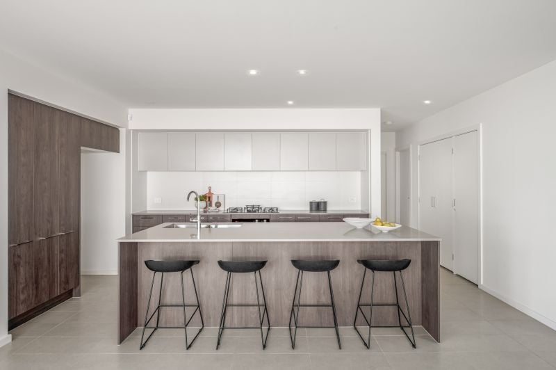 - Stunning modern kitchen with stone benchtop, two Fisher and Paykel ovens, and integrated dishwasher