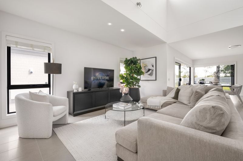 - Showcasing a selection of living areas including lounge, living and dining rooms plus an upstairs rumpus