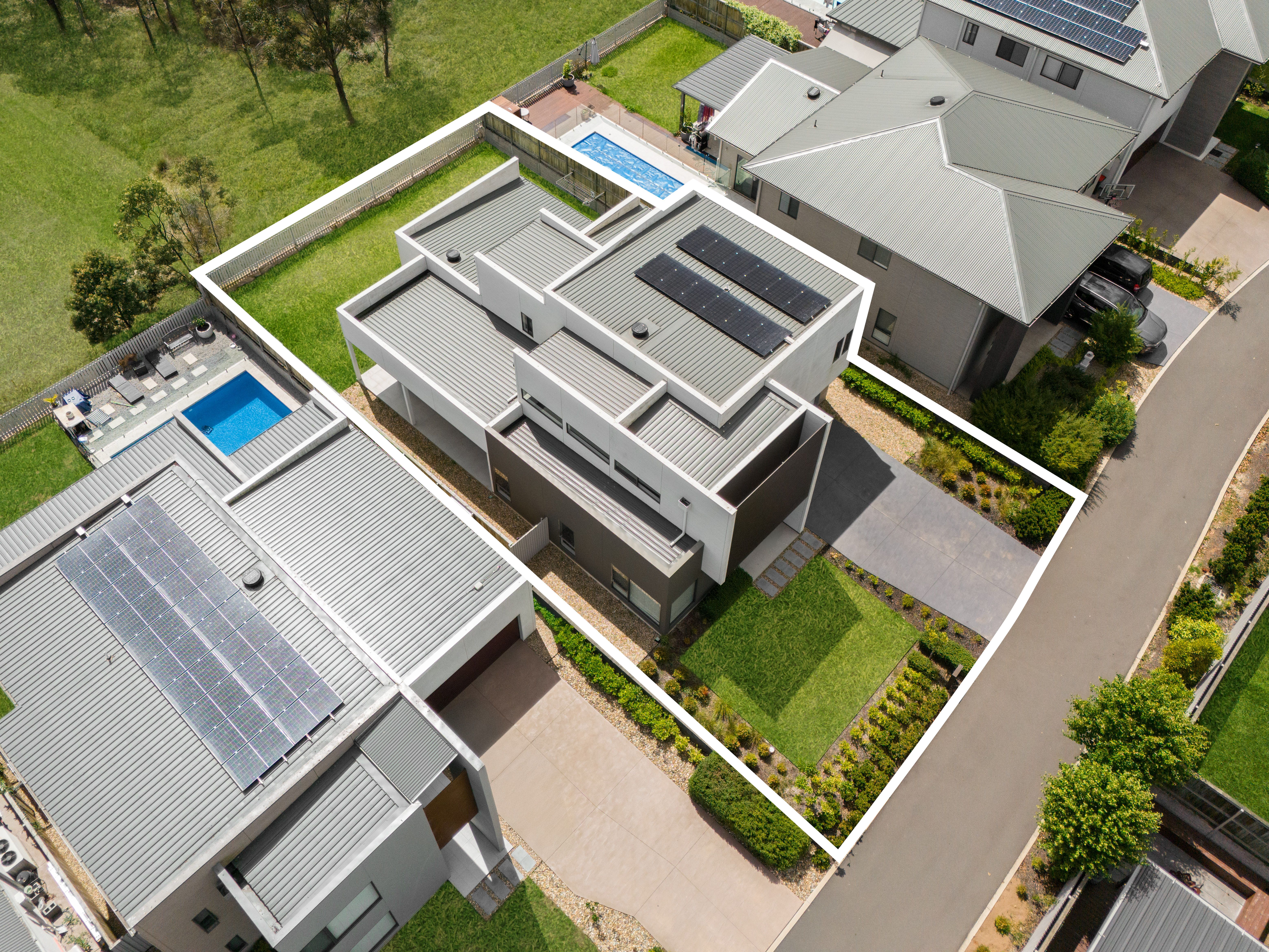 - Complementing the luxurious living spaces, are further features; Actron two zoned ducted air conditioning, downlights, alarm system and solar panels