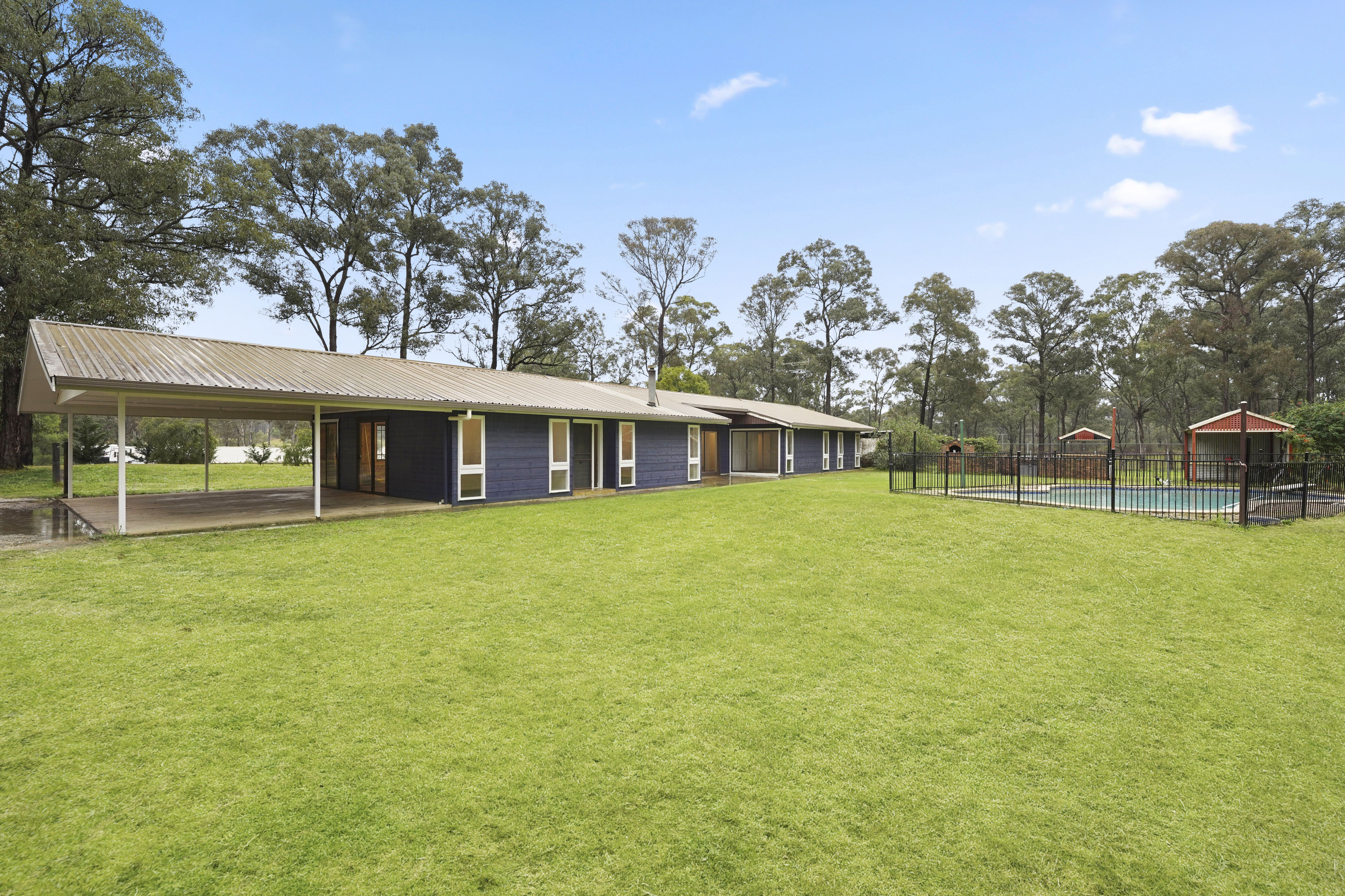 Set on approximately 9 acres, this home is in a prime location, just off Wilton Park Road and only minutes from m5 freeway access. This light filled home has had a face lift, with new interior and exterior paint, new carpet and window coverings. Offering a spacious layout to suit the whole family, the home consists of a central kitchen with separate meals area and split system air conditioning. Large lounge room with slow combustion fire place, plus a separate rumpus room, perfect for a second lounge room or kids media / games room. Three great sized bedrooms positioned down one wing of the home, with built in robes, plus main with ensuite. Fourth bedroom situated near the entry of the home, which would also be perfect for a home office. Updated main bathroom with free standing bath, new vanity and separate toilet, large laundry with room for storage. Shared access driveway, triple carport, plus pergola which overlooks the inground pool & surrounding land. This property offers picturesque acres and some separate paddocks, perfect for up to 3 horses, plus enclosed tennis court sized yard also good for dogs, with shelter provisions and there’s a storage garage for those outdoor tools. [Less]