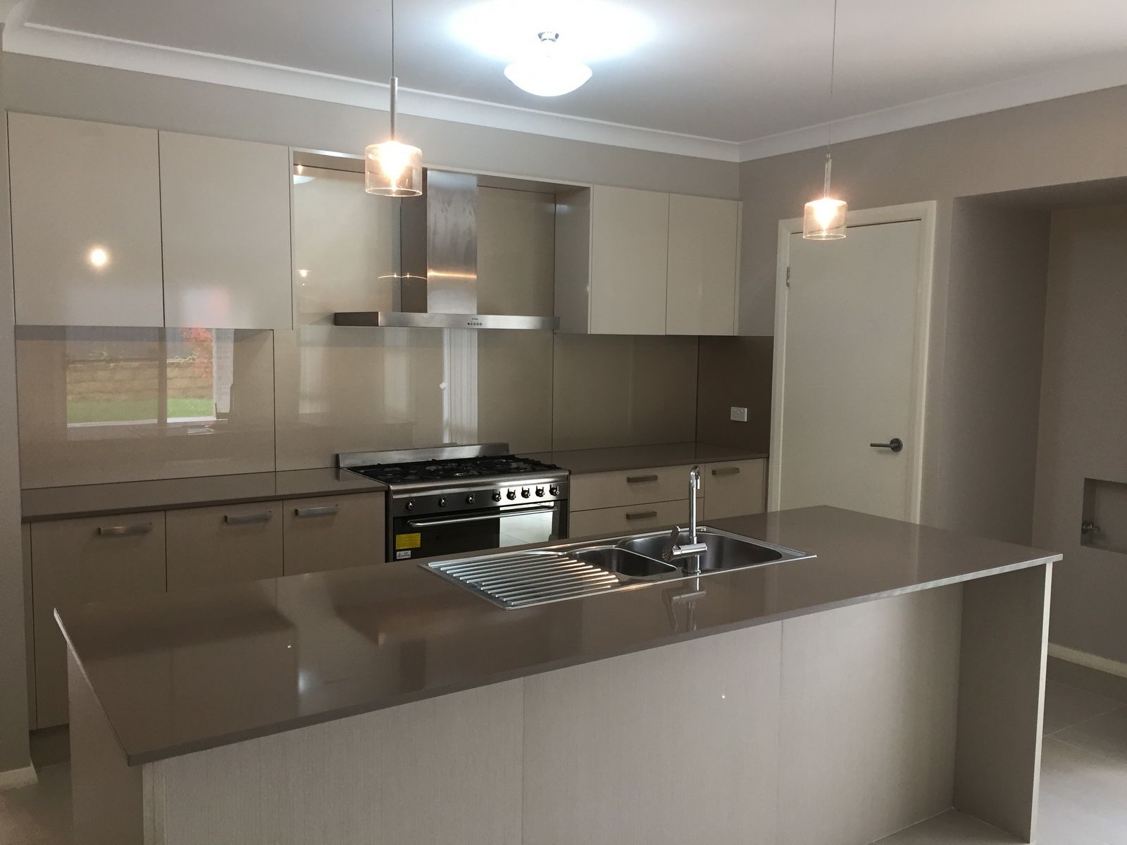 - Stone benchtops, glass splashback and walk in pantry
