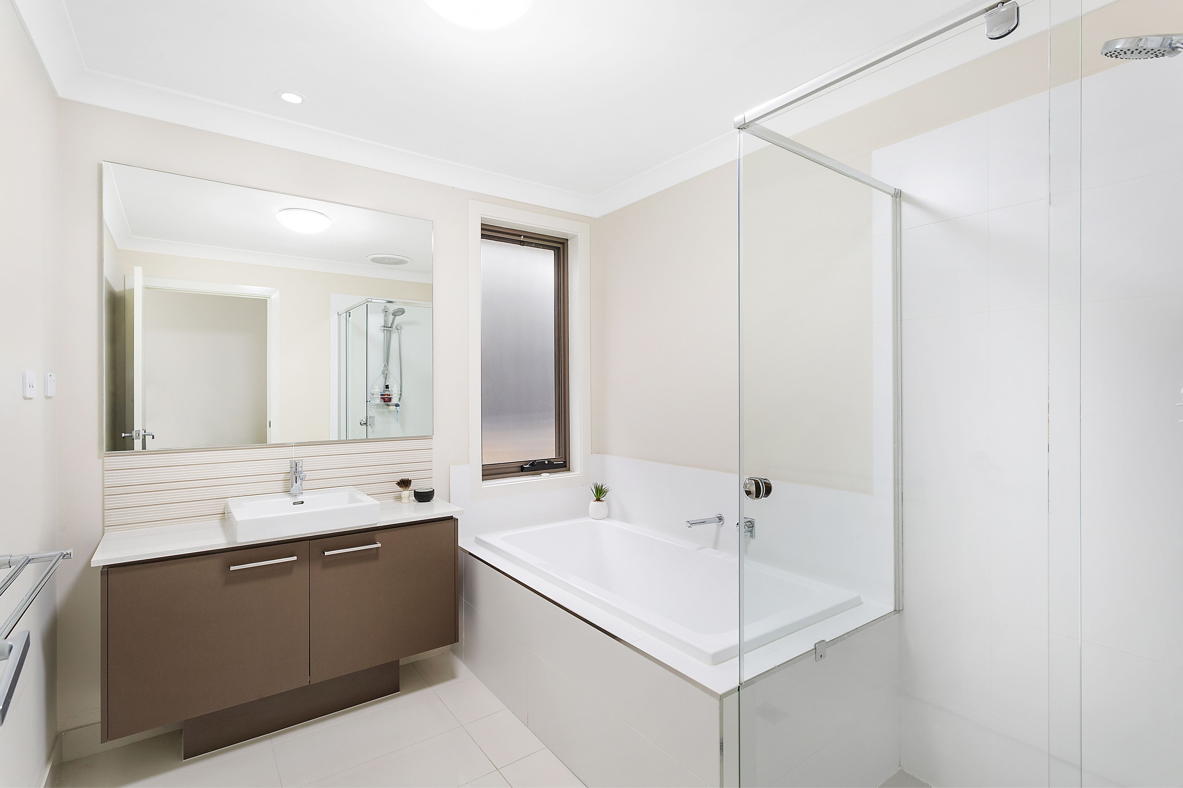 - Stylish bathroom reveals separate bath/shower, separate w/c