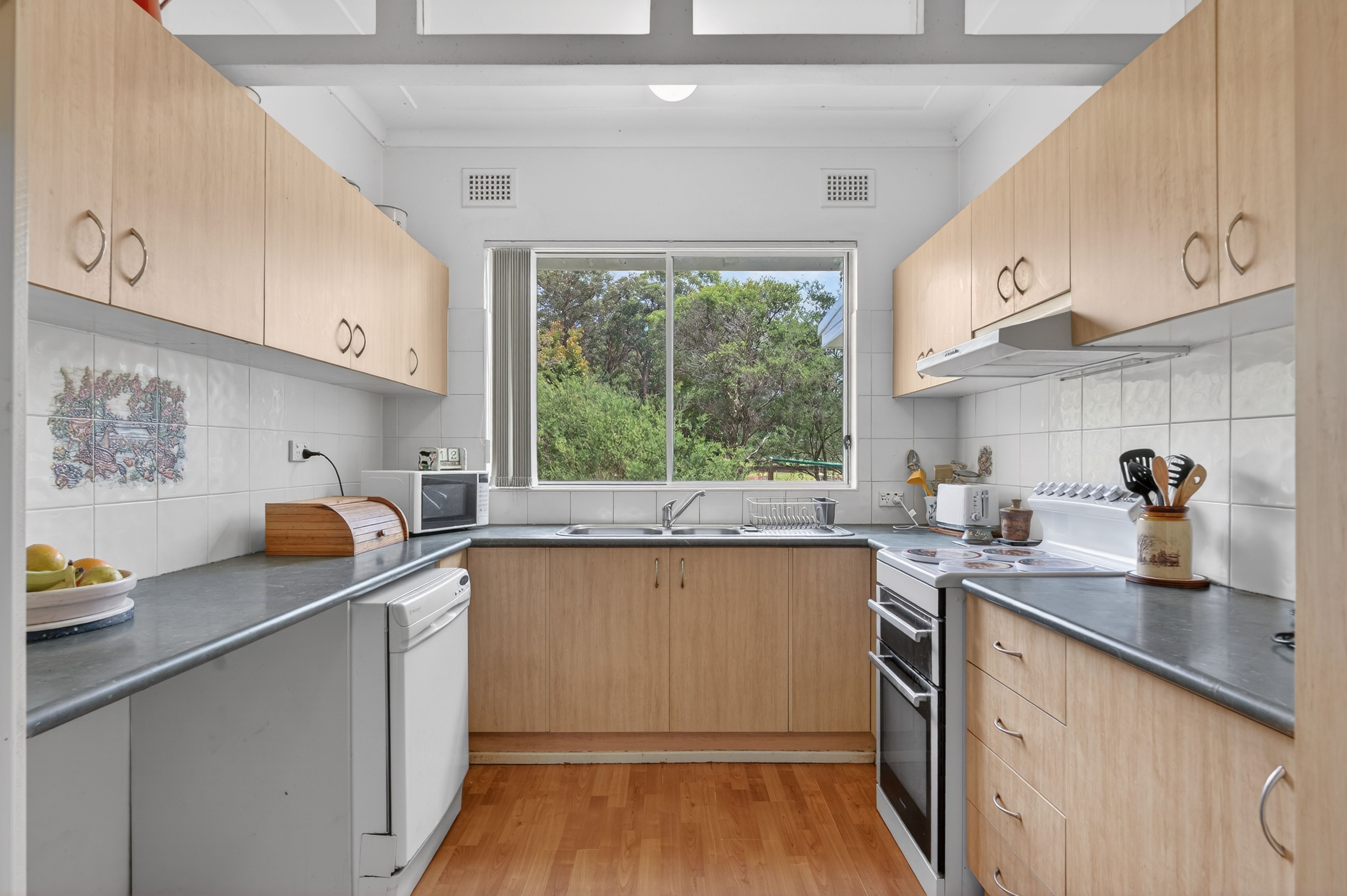 This single-level residence offers three spacious bedrooms, all carpeted with ceiling fans and two bedrooms with built-in wardrobes. There are two bathrooms and two w/c to accommodate your needs.