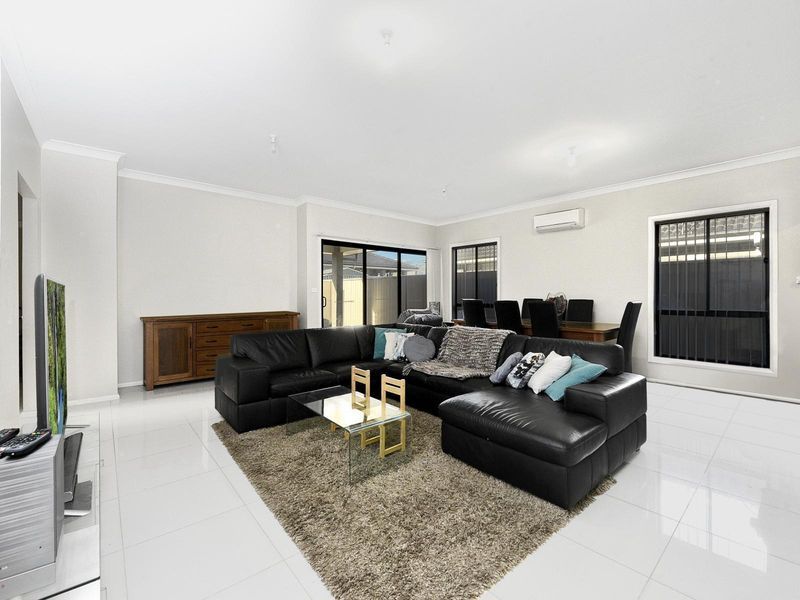 Situated in the East Village Estate, this four bedroom family home is complete with a stylish kitchen including stone bench tops, breakfast bar and stainless steel appliances. All bedrooms are decent sized and carpeted with built in robes.