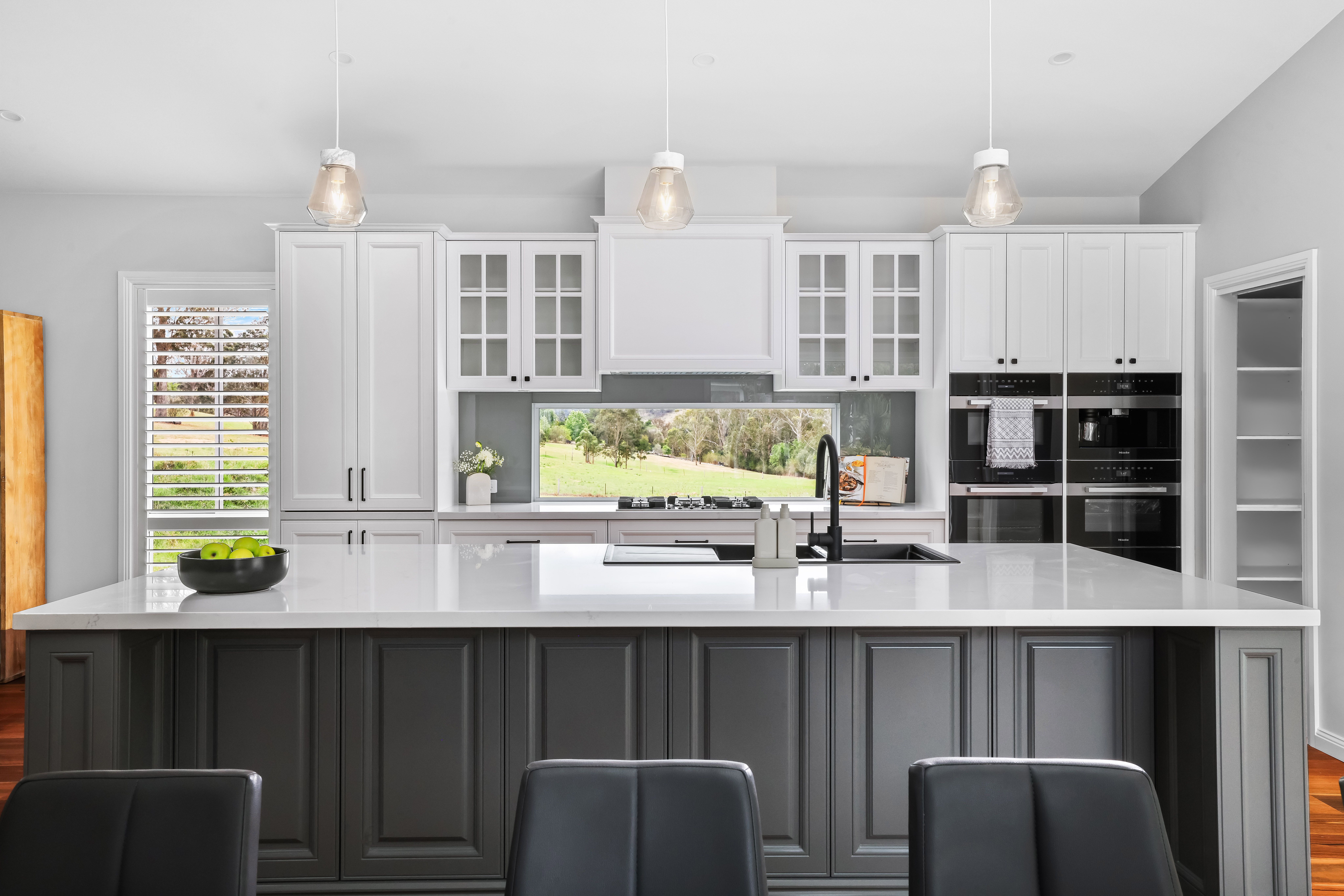- An exquisite and elegant kitchen with 40mm CaesarStone benchtops, quality German appliances
