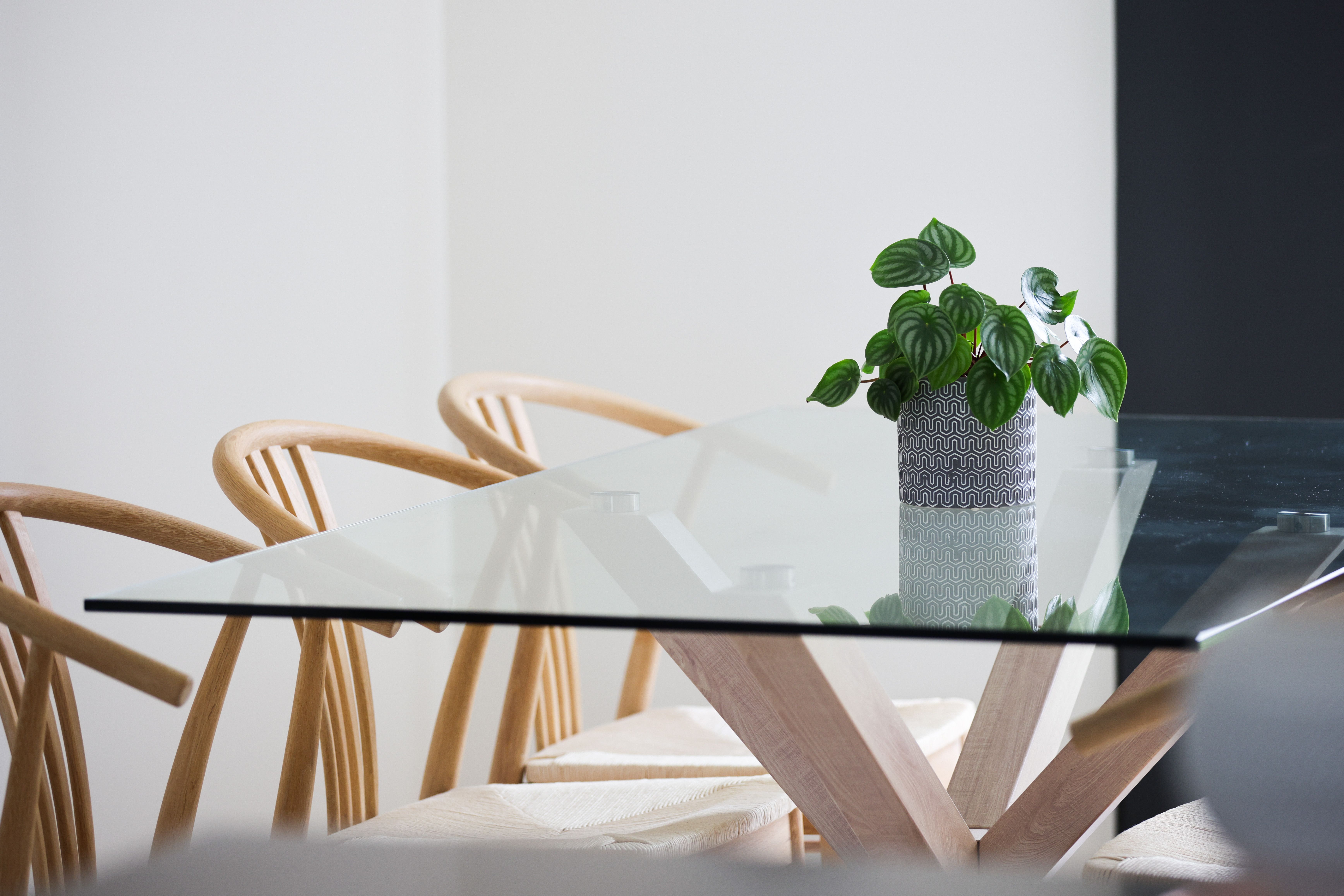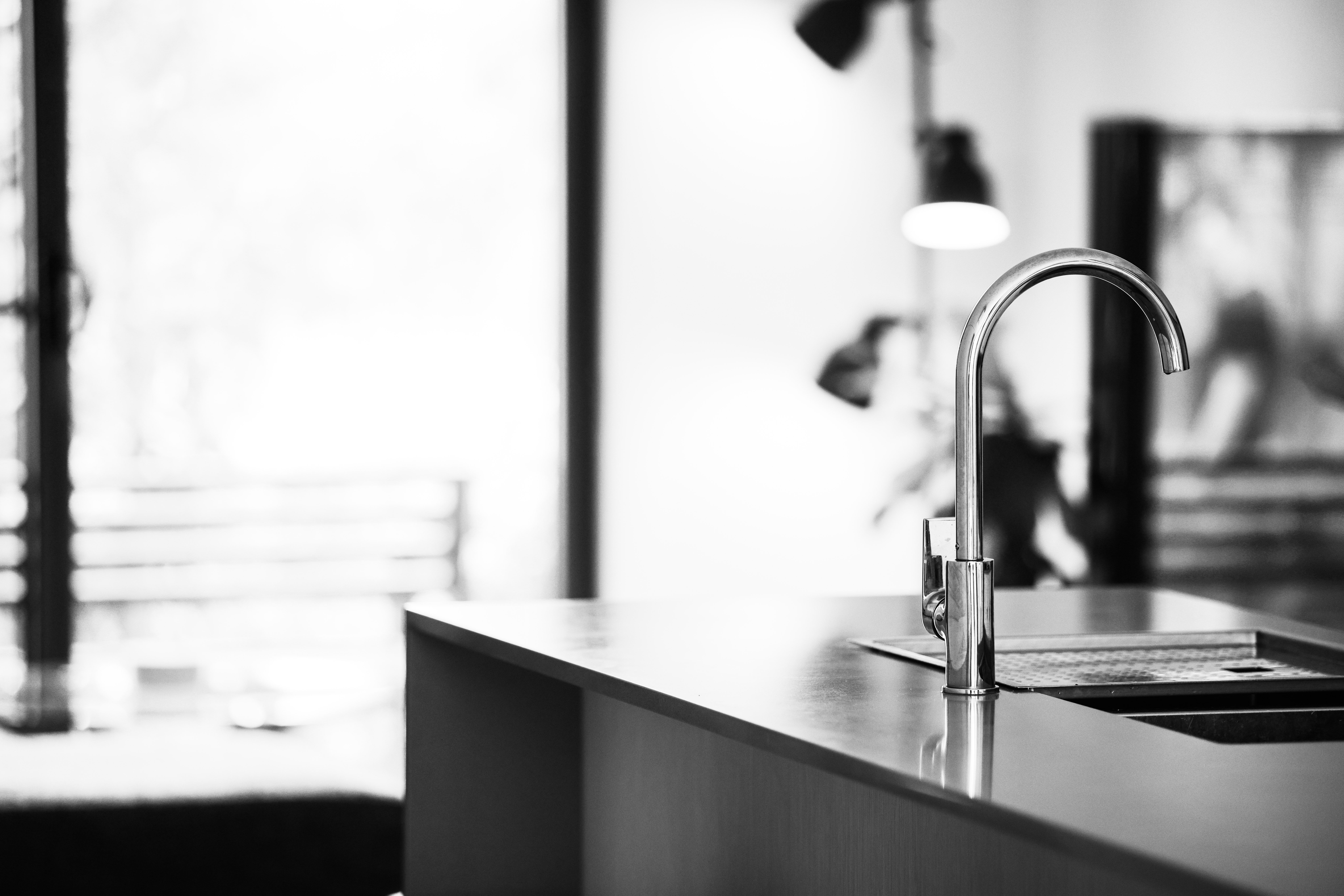 - Sleek and modern kitchen with stone benchtops with central waterfall edge island bench
