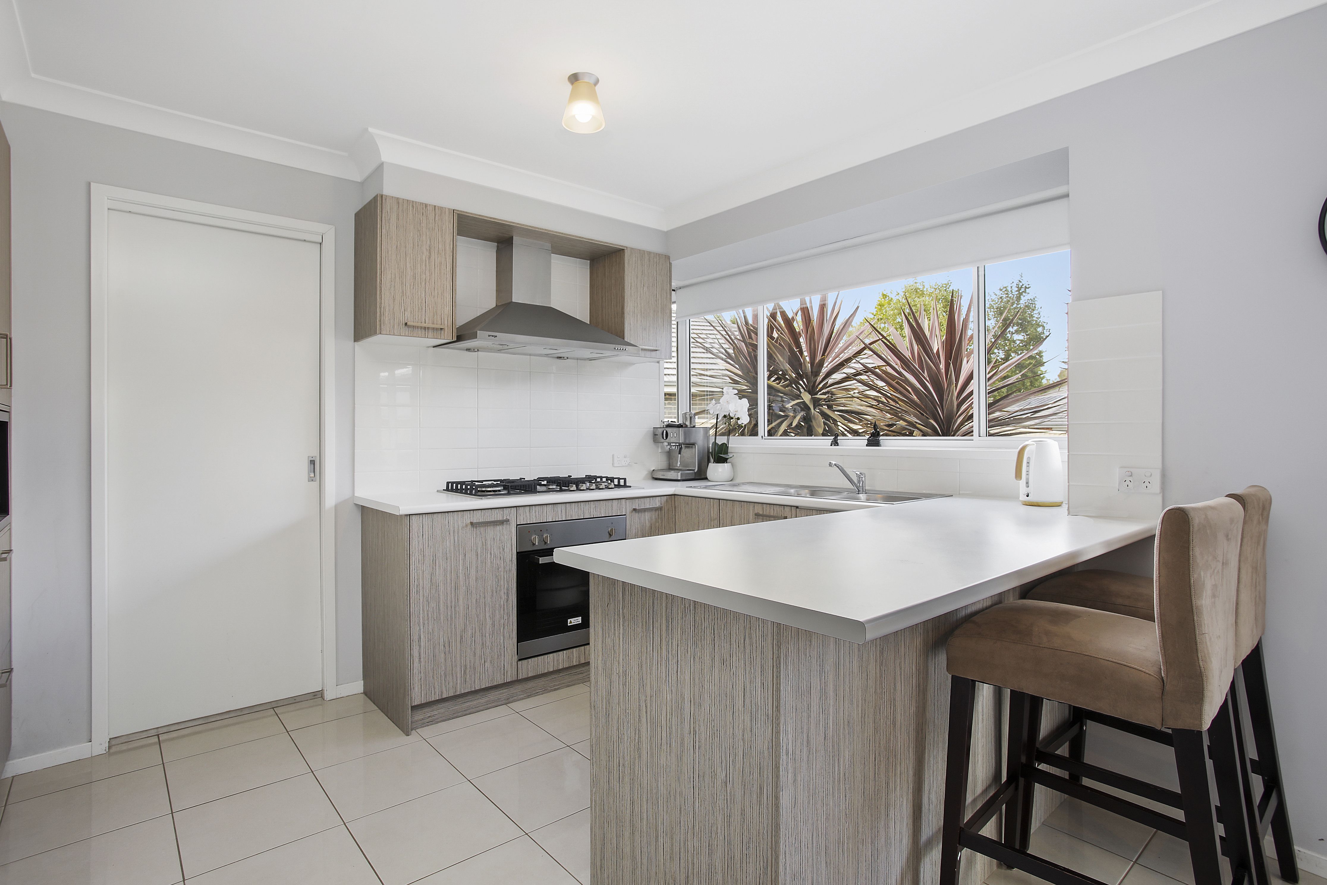 - Modern kitchen with gas cooktop and stainless steel appliances