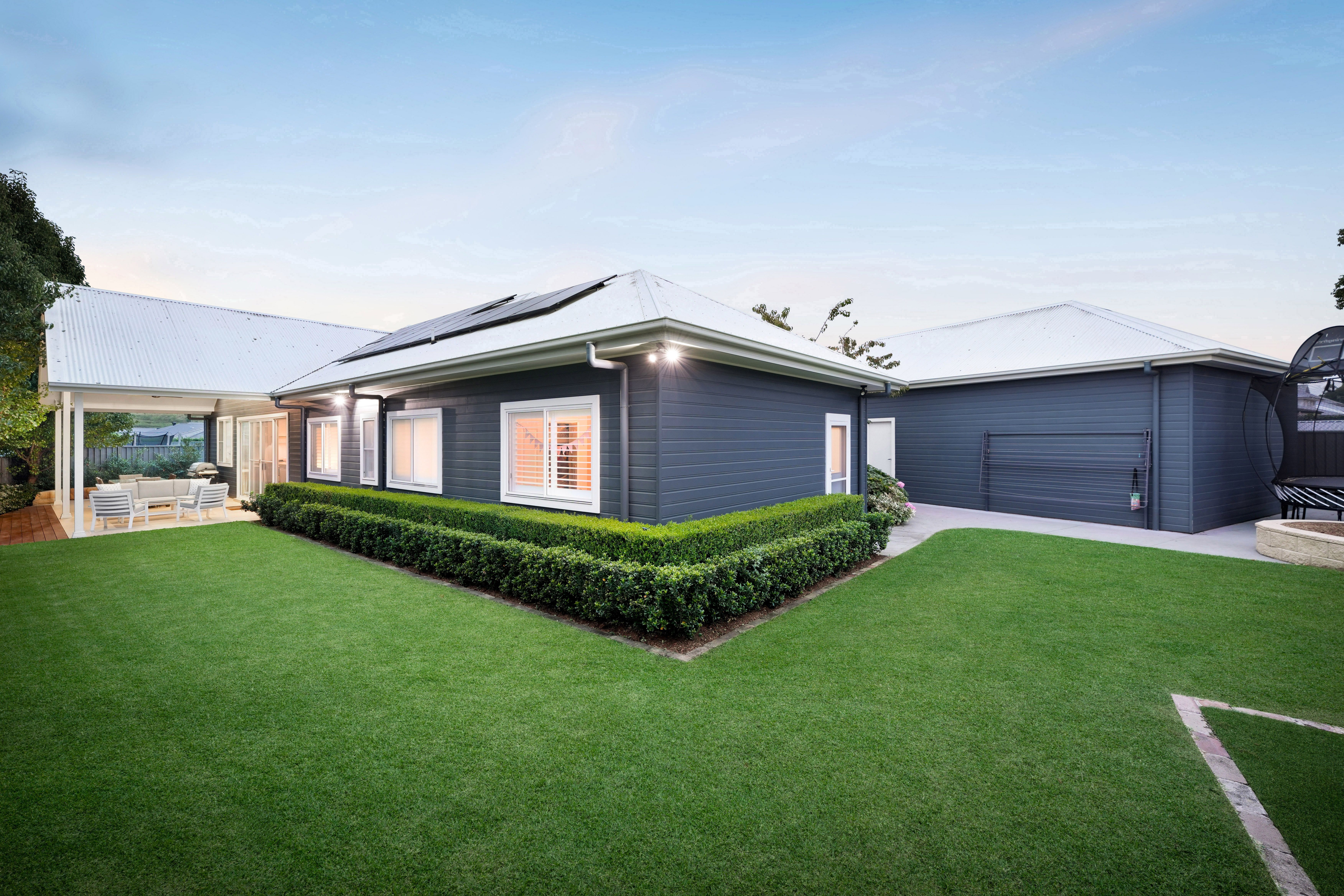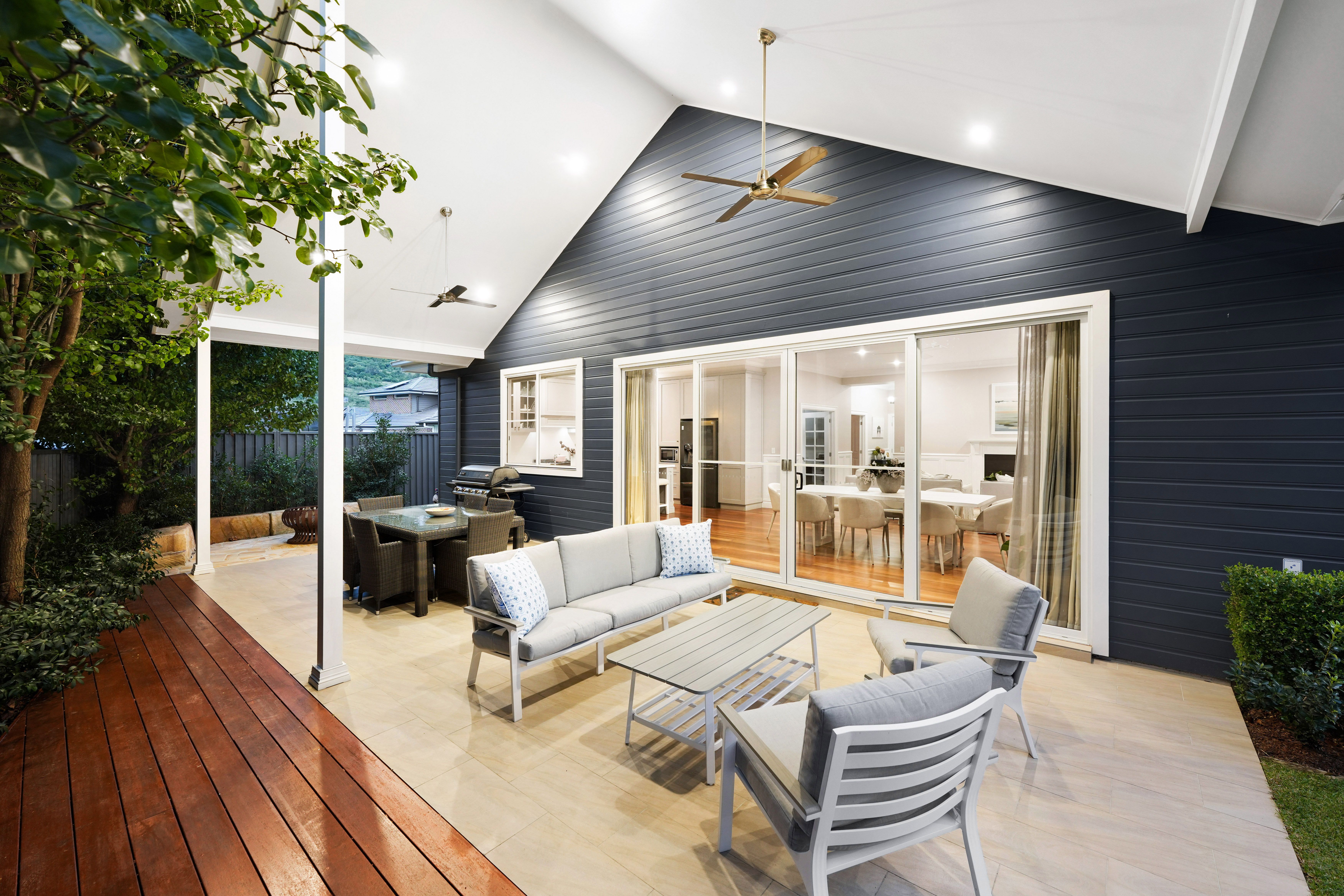 An impressive private undercover entertaining alfresco, cocooned in stunning landscaped gardens, with raked high ceilings, ceiling fans, quality sandstone tiling and extended decking area. A large, secure backyard with children's play area with soft fall surface and room for a 8x4m pool STCA.