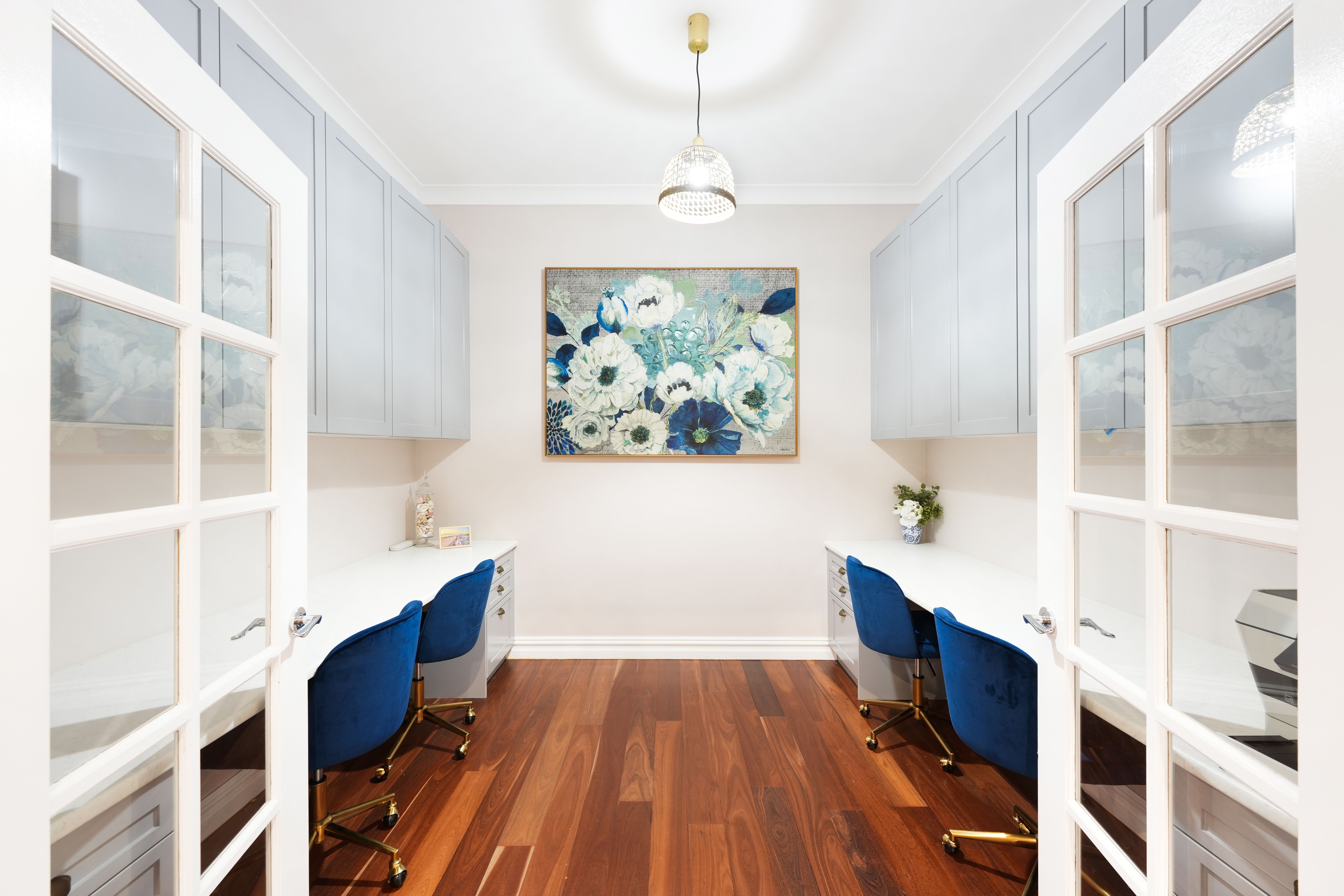 Five bedrooms, including a sumptuous master bedroom featuring a massive walk-in robe and a luxurious ensuite showcasing a double vanity, a freestanding bath and shower. A separate wing of the home accommodates four further bedrooms, a beautiful family bathroom and an impressionable home office/study incorporating built-in desks and cabinetry.