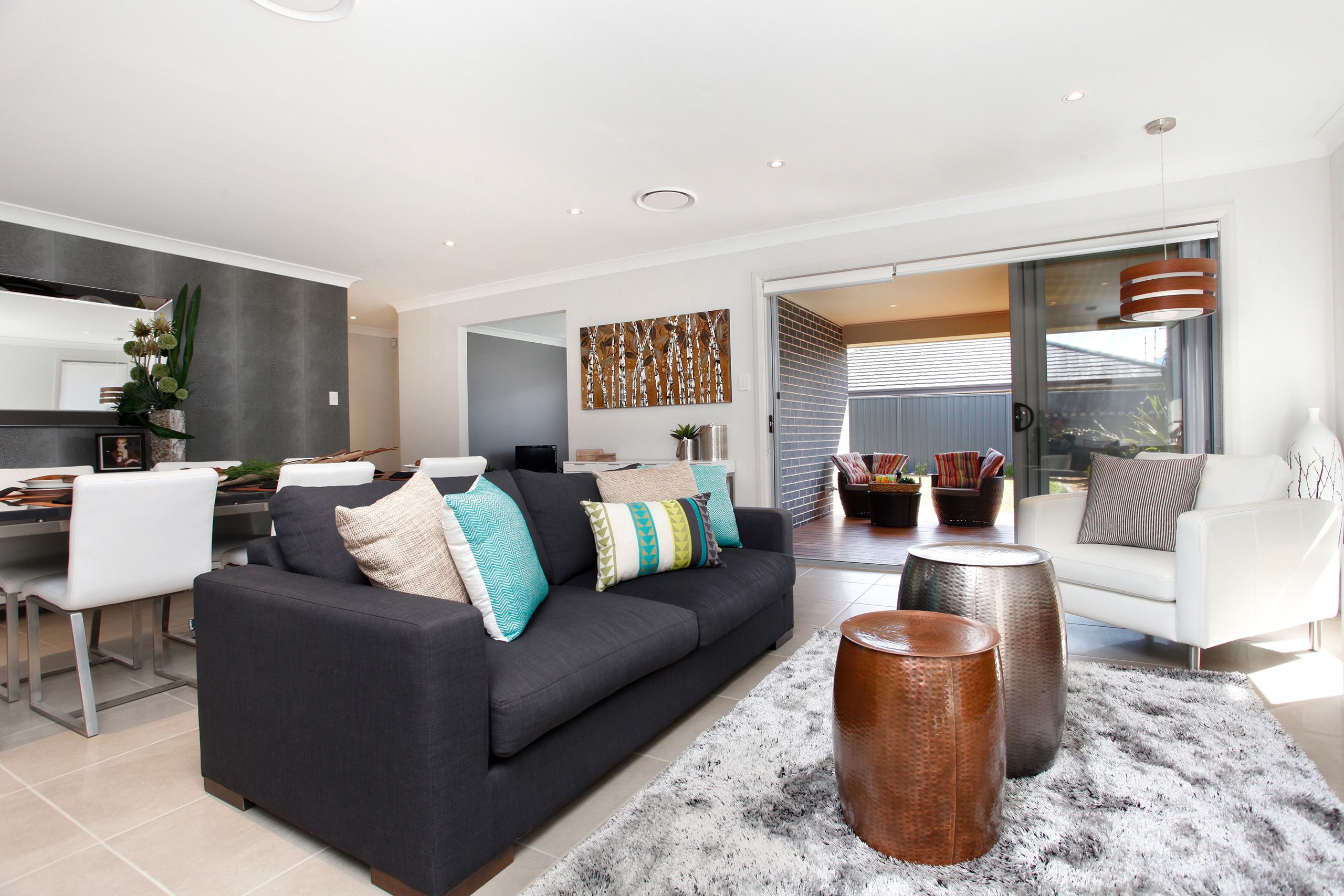 - Indoors flow seamlessly to the covered outdoor entertaining area