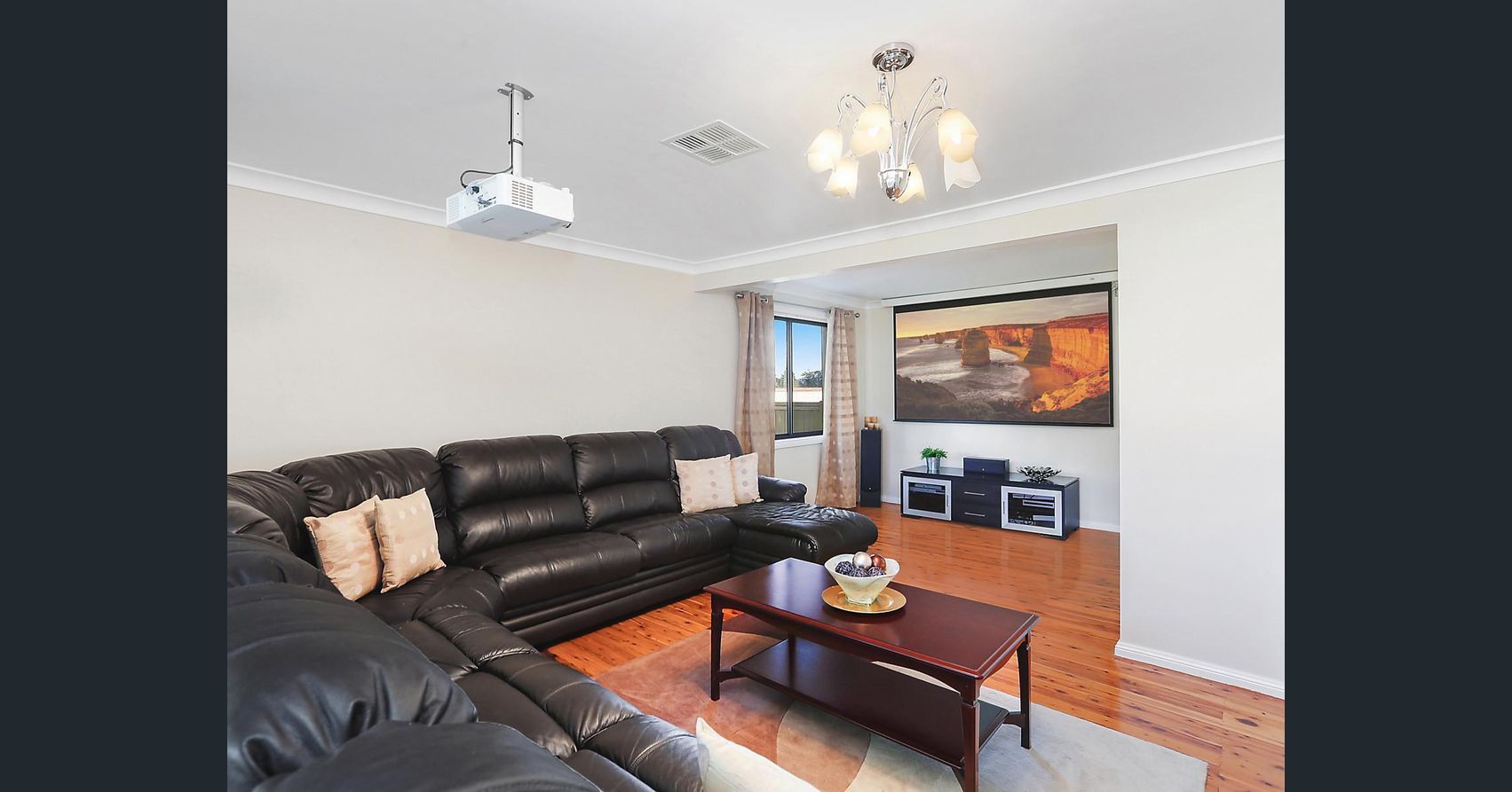 - Downstairs L shaped lounge room (projector not included)