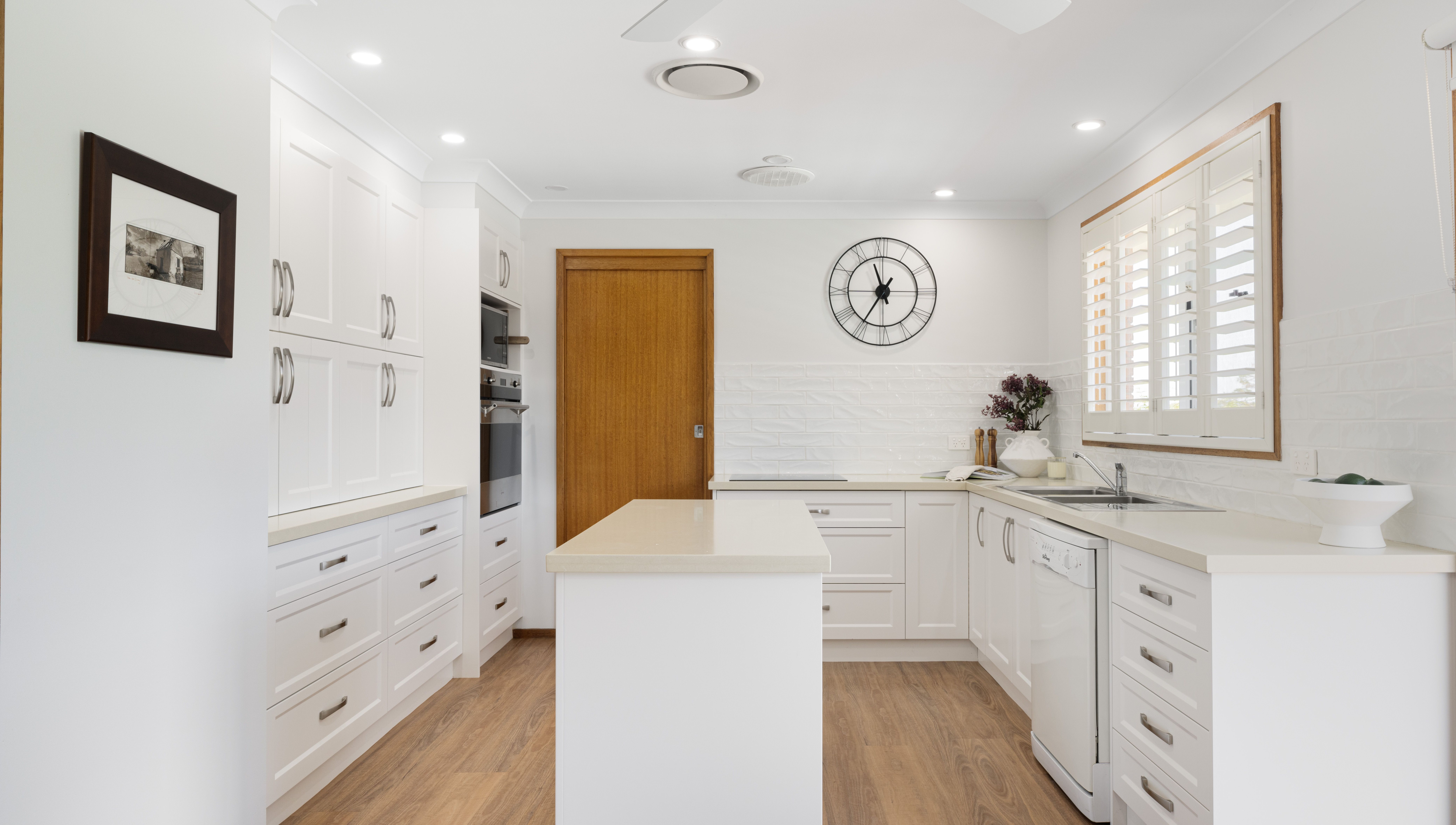 - A classic country style kitchen featuring 40mm stone benchtop wall oven, electric cooktop, walk-in pantry and premium appliances