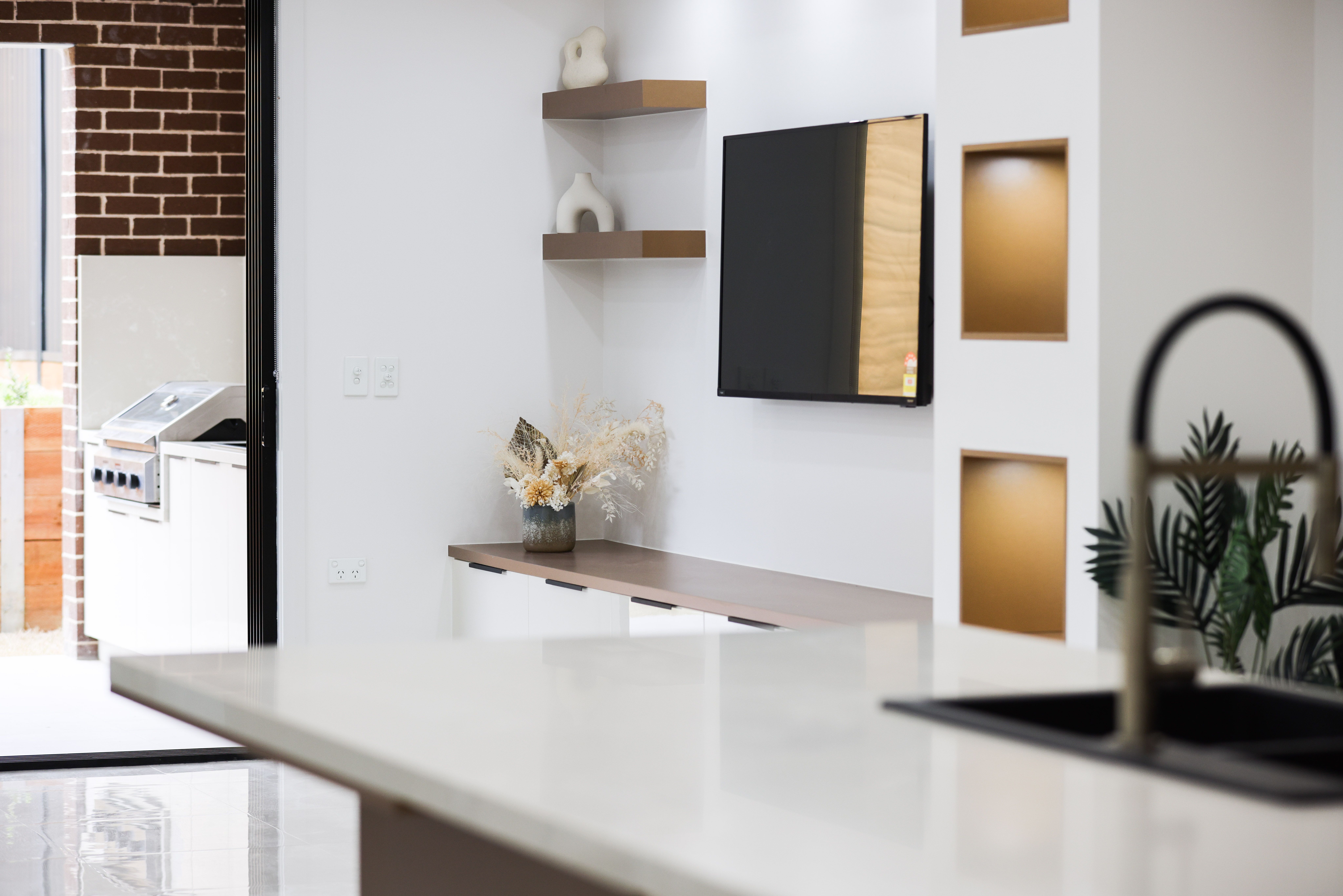 - Open plan living and dining rooms flow seamlessly to the outdoor entertaining area