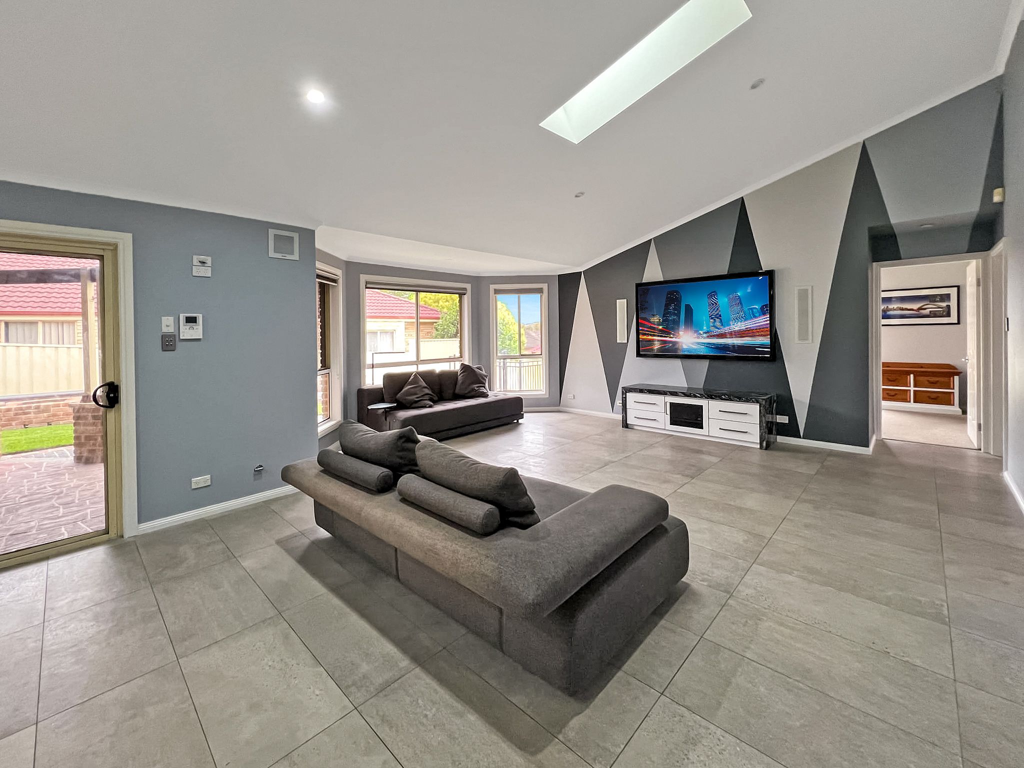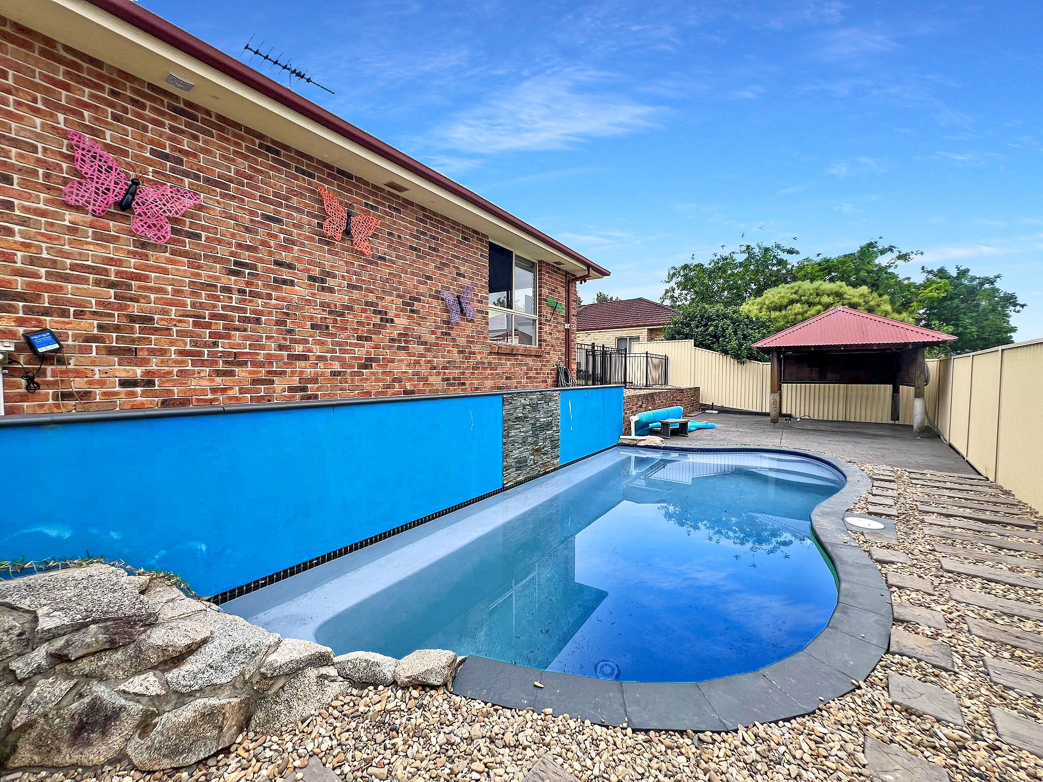 If you are looking for a home with the lot, then stop searching. Featuring a split level design, good proportions with flowing living spaces that let the indoors meet outdoors. Huge front lounge room with wet bar, perfect for family movie nights or gathering for that football match. Large open plan family and dining off the stubbing central kitchen. This quality kitchen has all the goods for at home entertaining with double ovens, island bench top, dishwasher, gas cooking in island bench top and loads of prep room. High ceilings and v-lux skylights create plenty of natural lighting. Mian bedroom to the rear with walk in robe and updated ensuite. 3 other bedrooms offer built in robes and are centered around the main bathroom which has also been updated. 5th bedroom or study upstairs, perfect for guest quarters. Internal laundry with third bathroom including toilet and shower, double garage and side access, perfect for a trailer or caravan. The home has ducted air and home security for peace of mind. Leading outside is a huge entertaining space with pergola, separate cabana and fire pit area, plus a sparkling inground pool for those summer splashes. Get it before it gets snapped up! [Less]