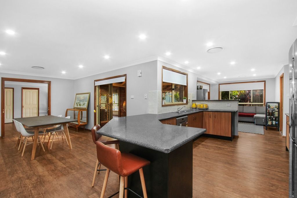 This large 5 bedroom home is situated in a quiet leafy area of Harrington Park and offers plenty of room for the whole family. Recently painted throughout and re carpeted bedrooms, the home consists of a main bedroom which includes a walk in robe, ceiling fan and ensuite bathroom. Bedrooms 2, 3 and 4 are all spacious and all offer ceiling fans and built in robes. The 5th bedroom is perfect for guest or in law accommodation with a built in robe and ensuite bathroom of it's own. Formal and informal living including lounge and separate dining room, family room off the kitchen and a huge rumpus separate room at the rear of the home. Timber look flooring throughout the living spaces and ducted air conditioning for your comfort. Large centrally located kitchen with dishwasher and plenty of cupboard storage. Double garage with additional storage space and drive through access. Huge undercover pergola for entertaining, easy to maintain backyard with a garden sheds for storage and to top it all off, an in ground swimming pool for your families enjoyment. [Less]