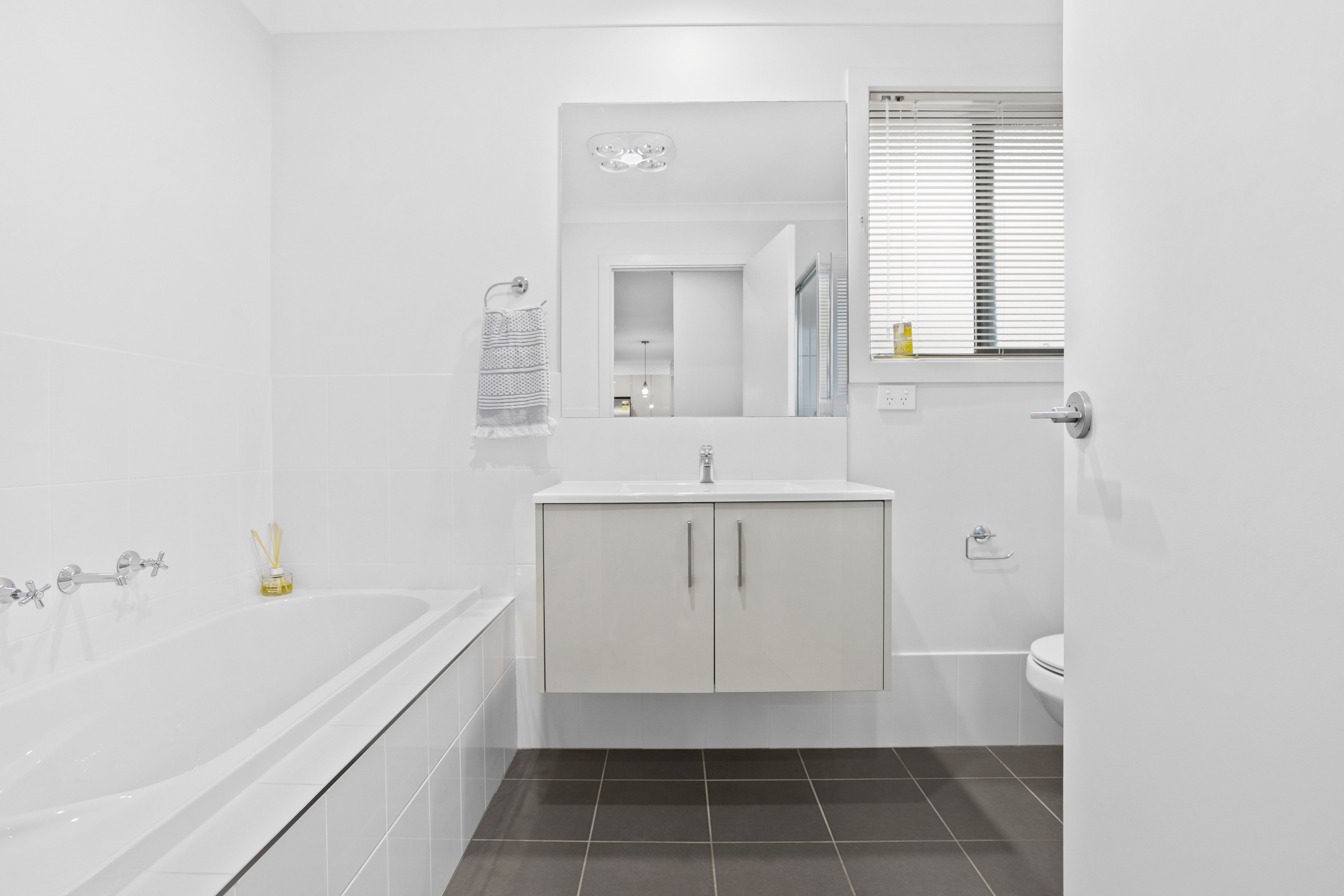 - Flow to vast alfresco entertaining area with café blinds