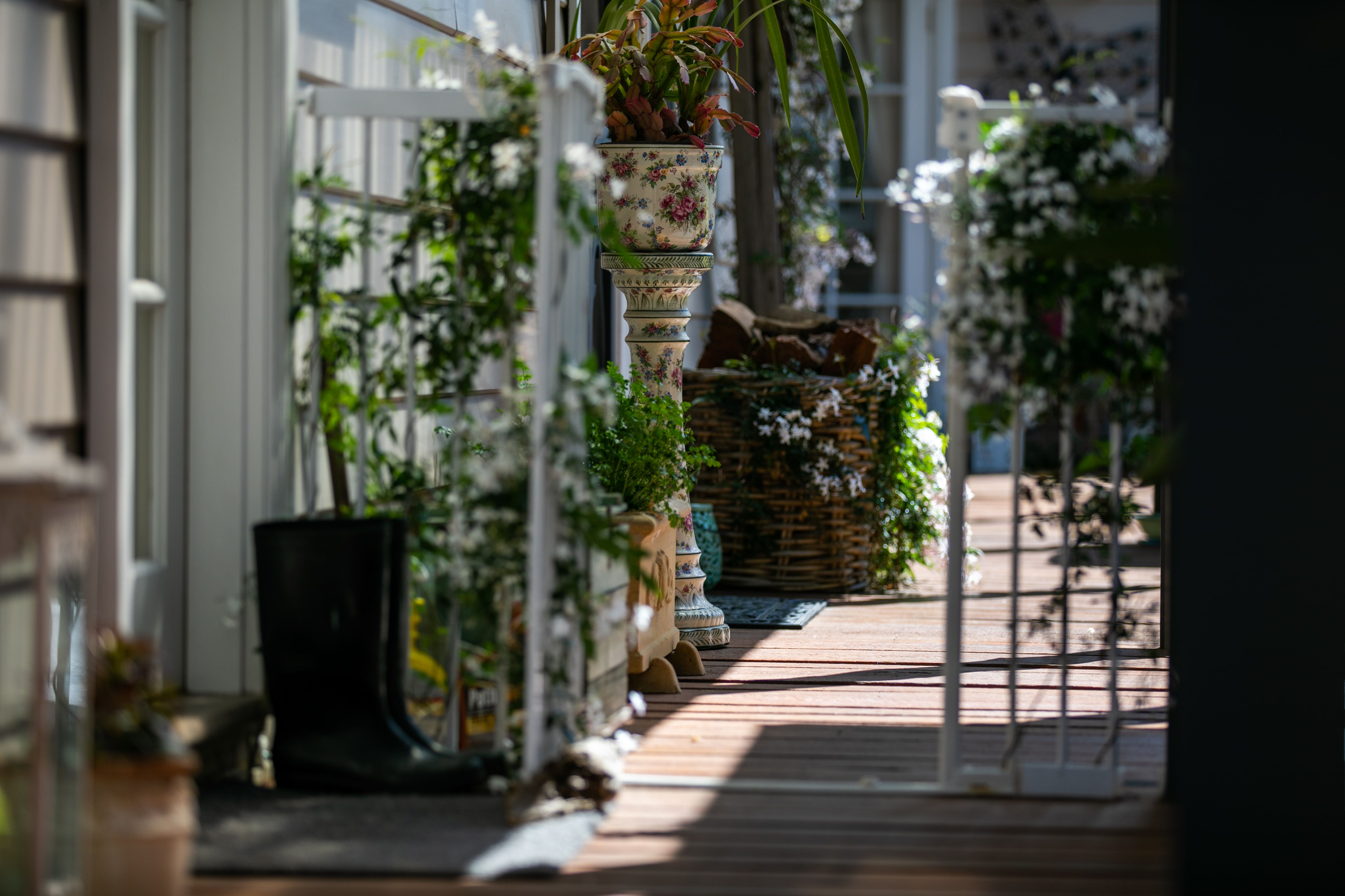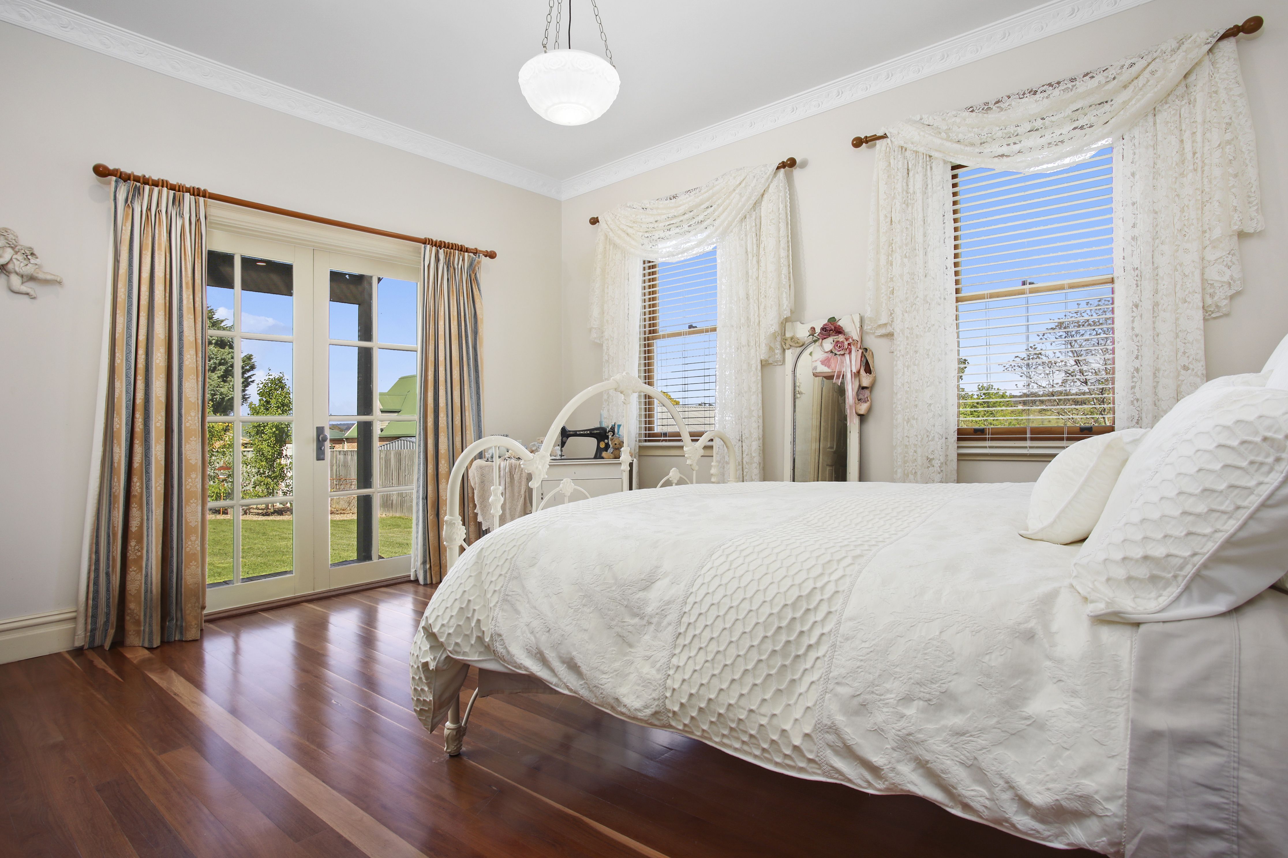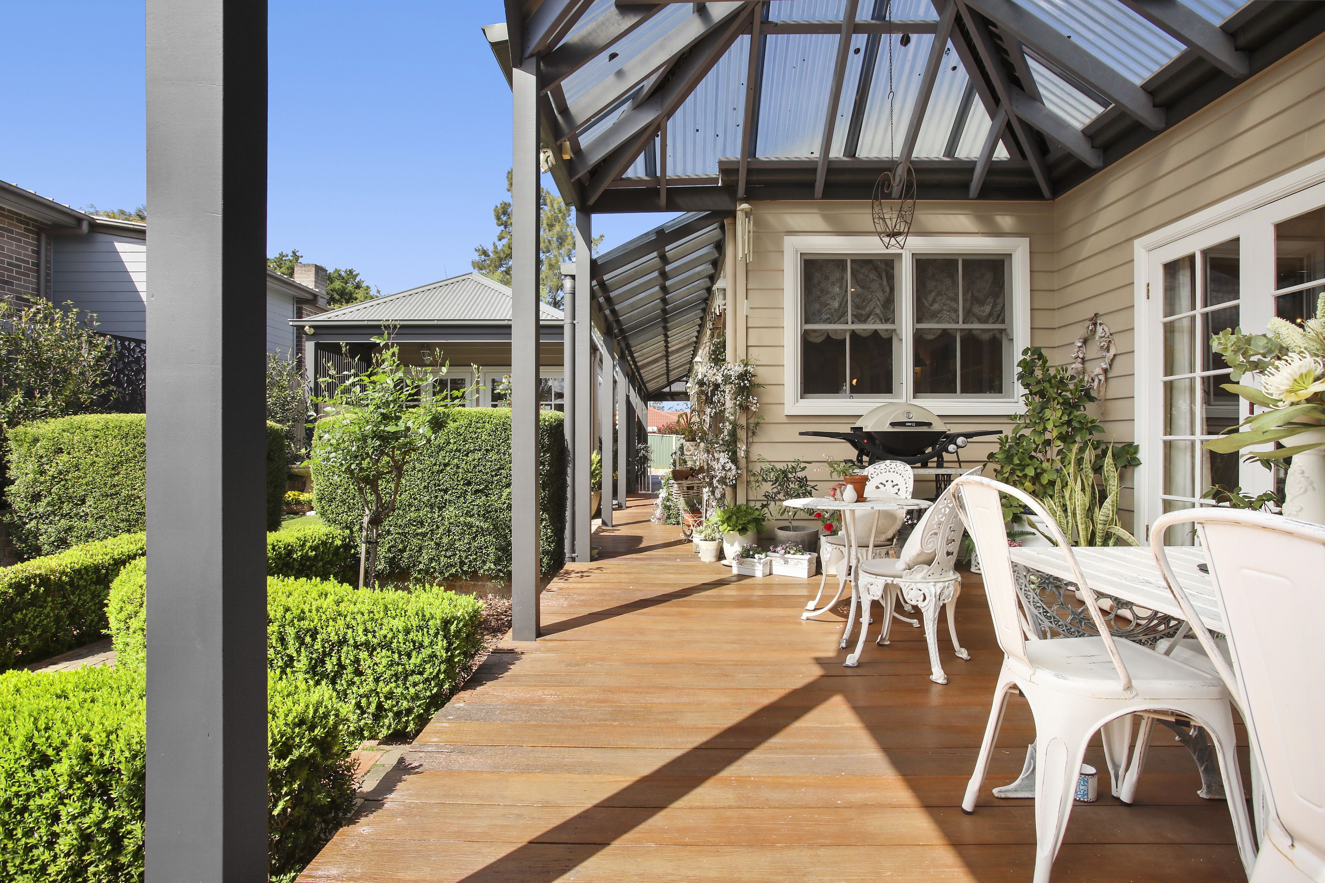 - Generous Merbau decked covered verandah on two sides of the house, gabled undercover alfresco area overlooking a charming courtyard garden