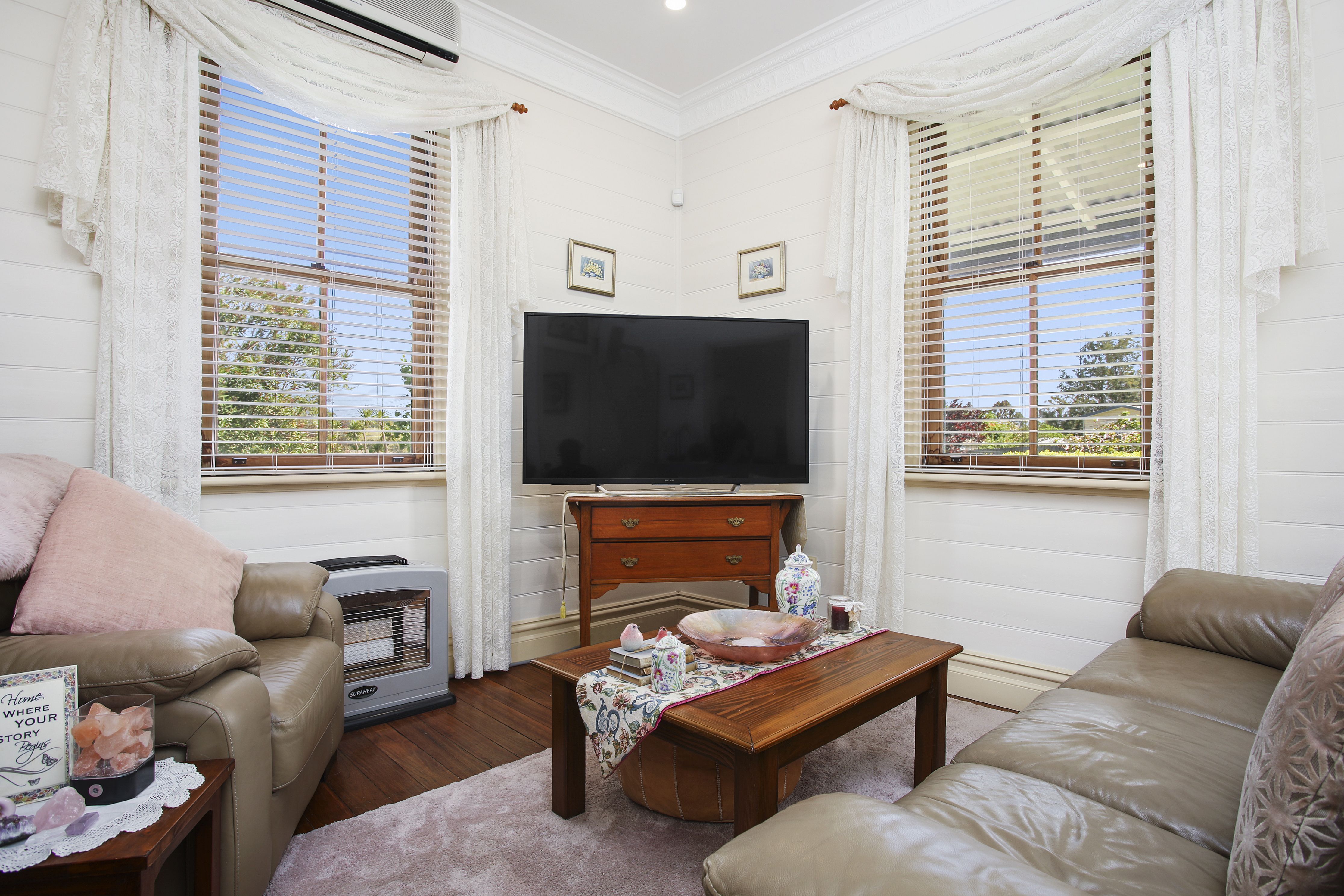 - Charming lounge room with heritage internal door features and ornate open fireplace