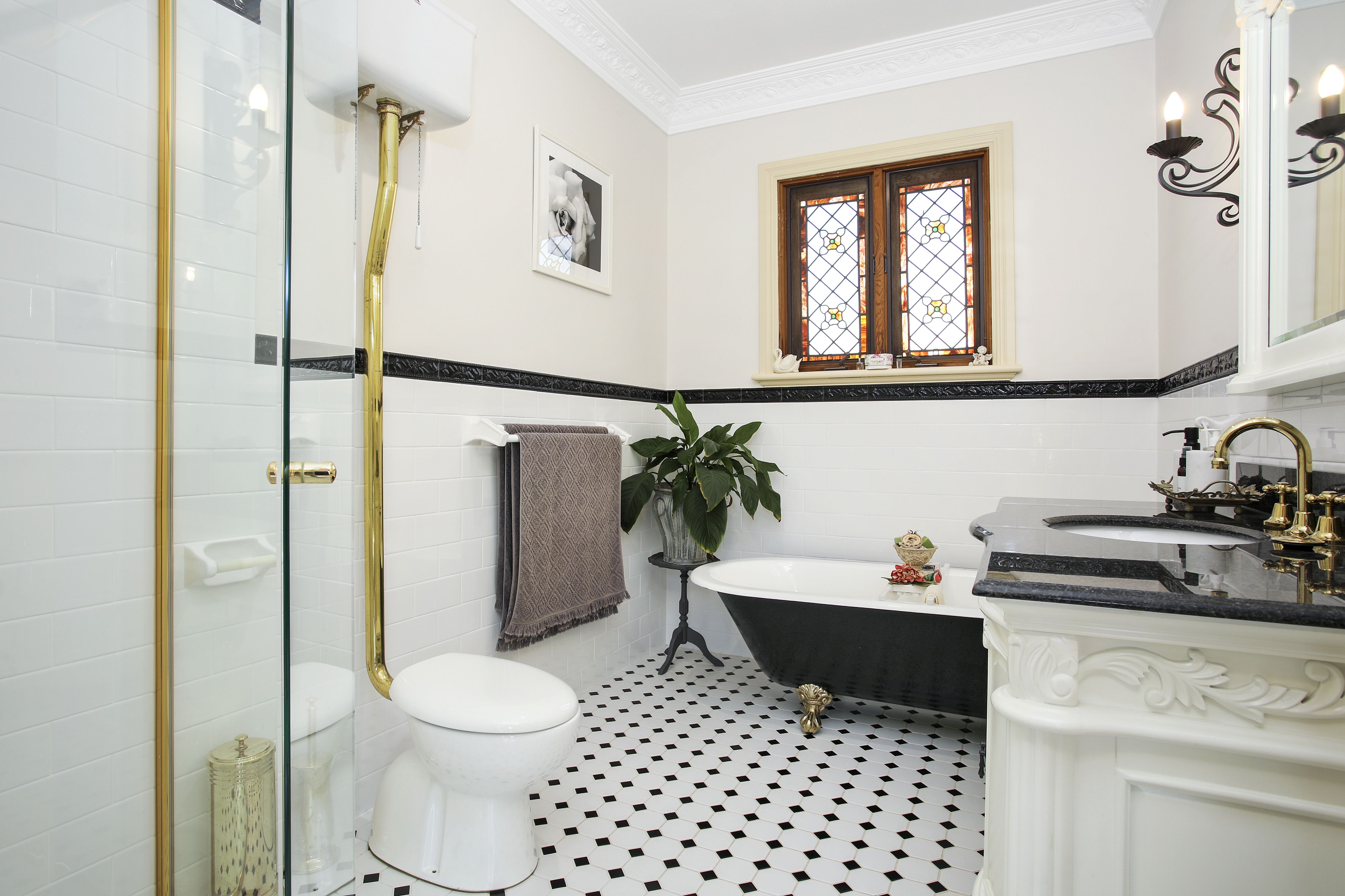 - The main bathroom has been fully renovated in a style reminiscent of days gone by with lead light windows
