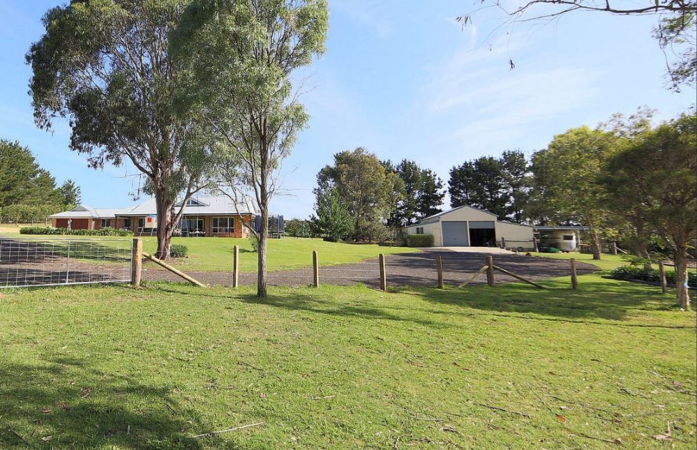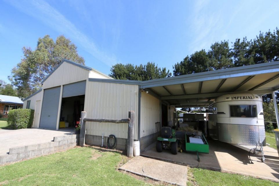 Pleasant gardens and landscaping with outdoor entertaining off kitchen. There are several paddocks, 2 shelters and a dam. Also, a flood lit sand arena for the horses.