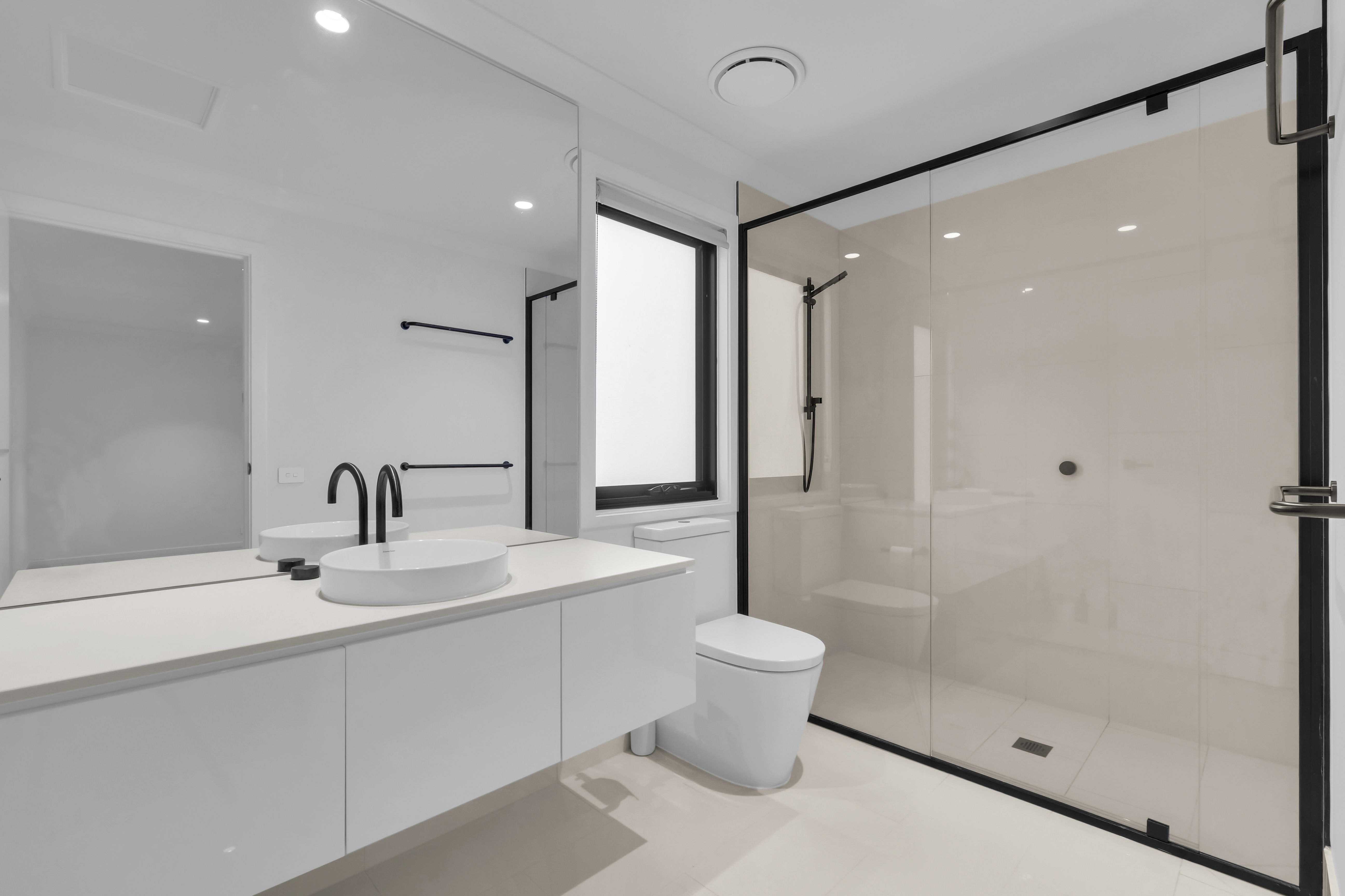 - High quality large format tiles and quality carpet and downlights throughout