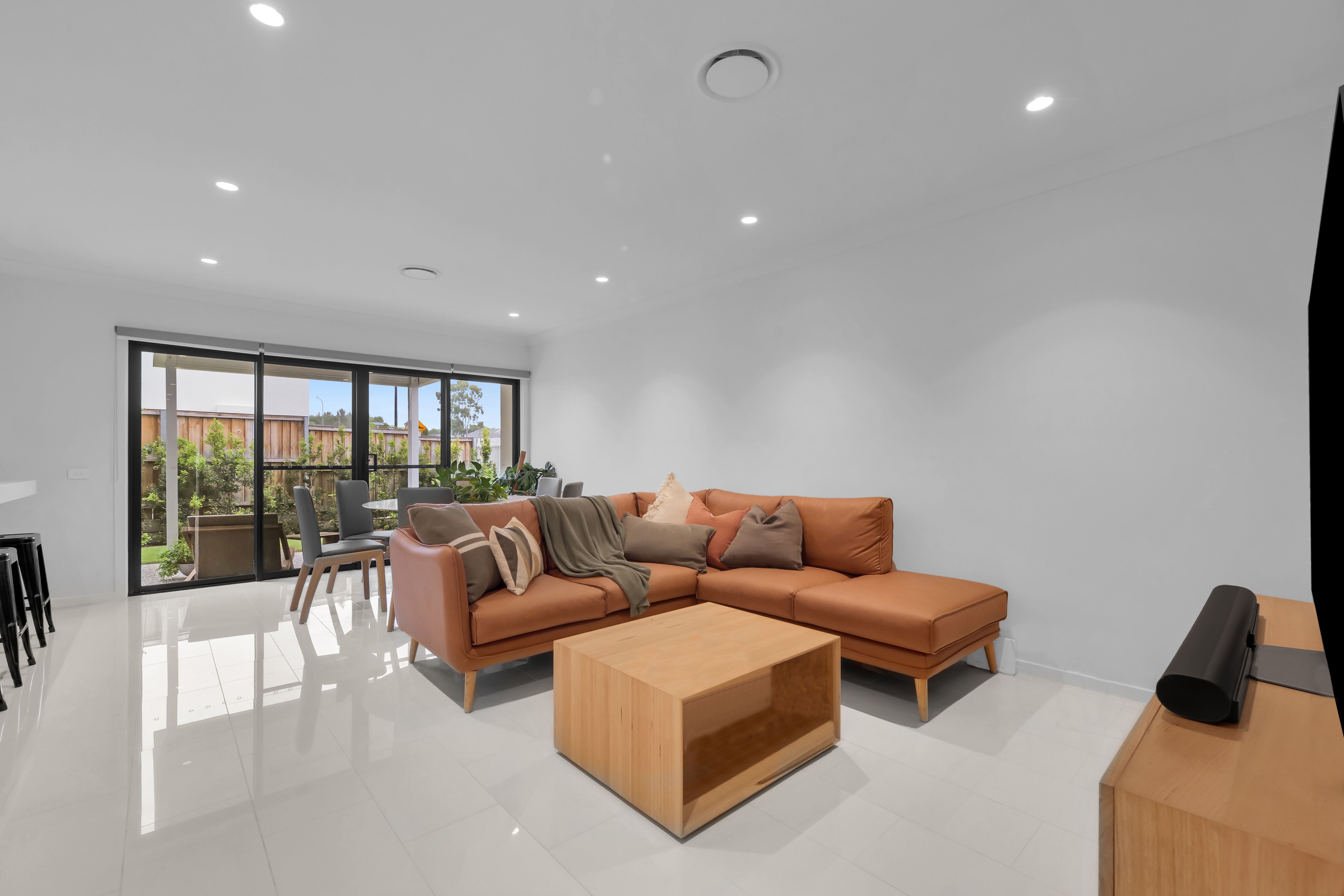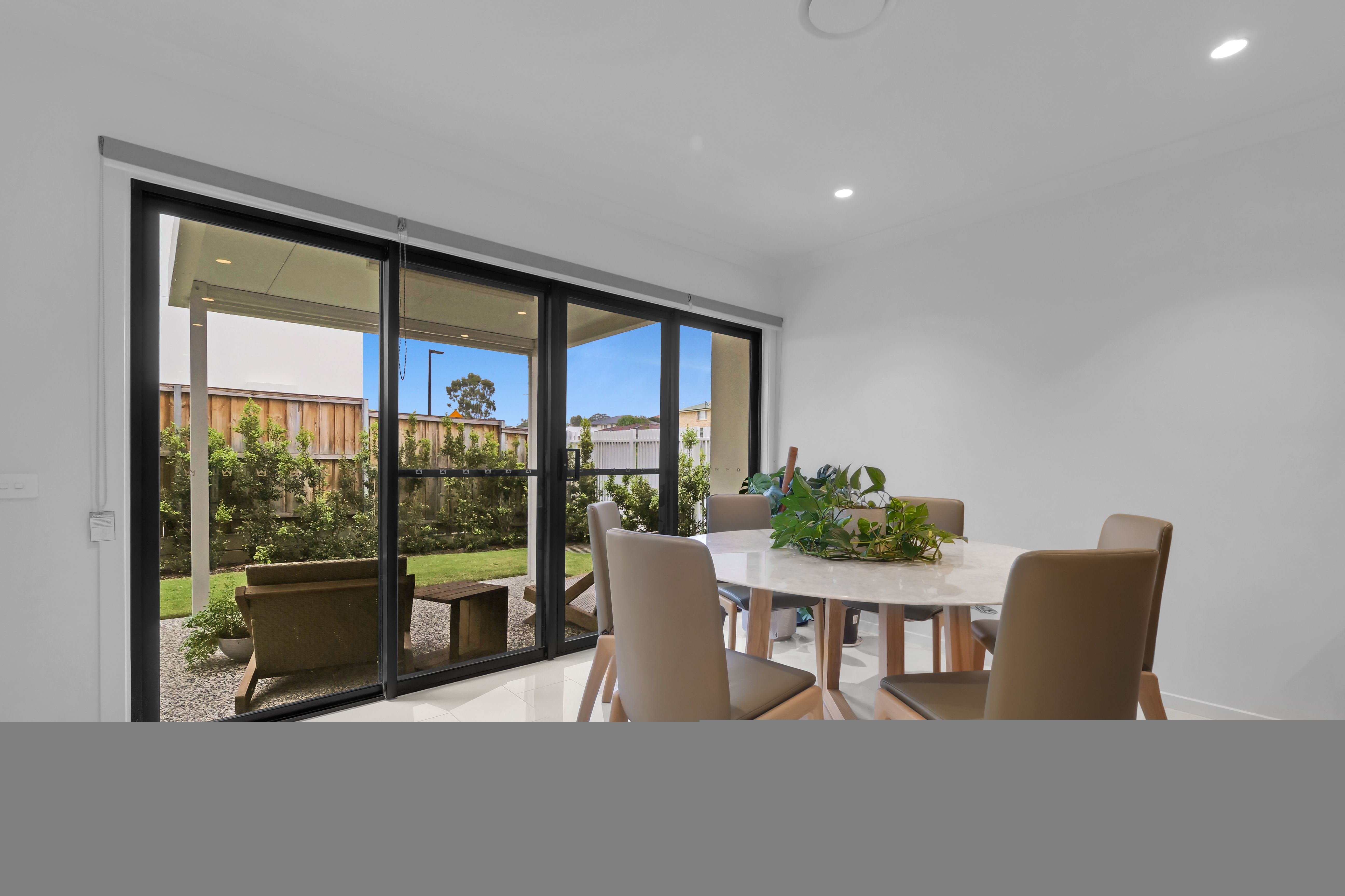 - Sun-filled combined living and dining room flows seamlessly to outdoor entertaining area
