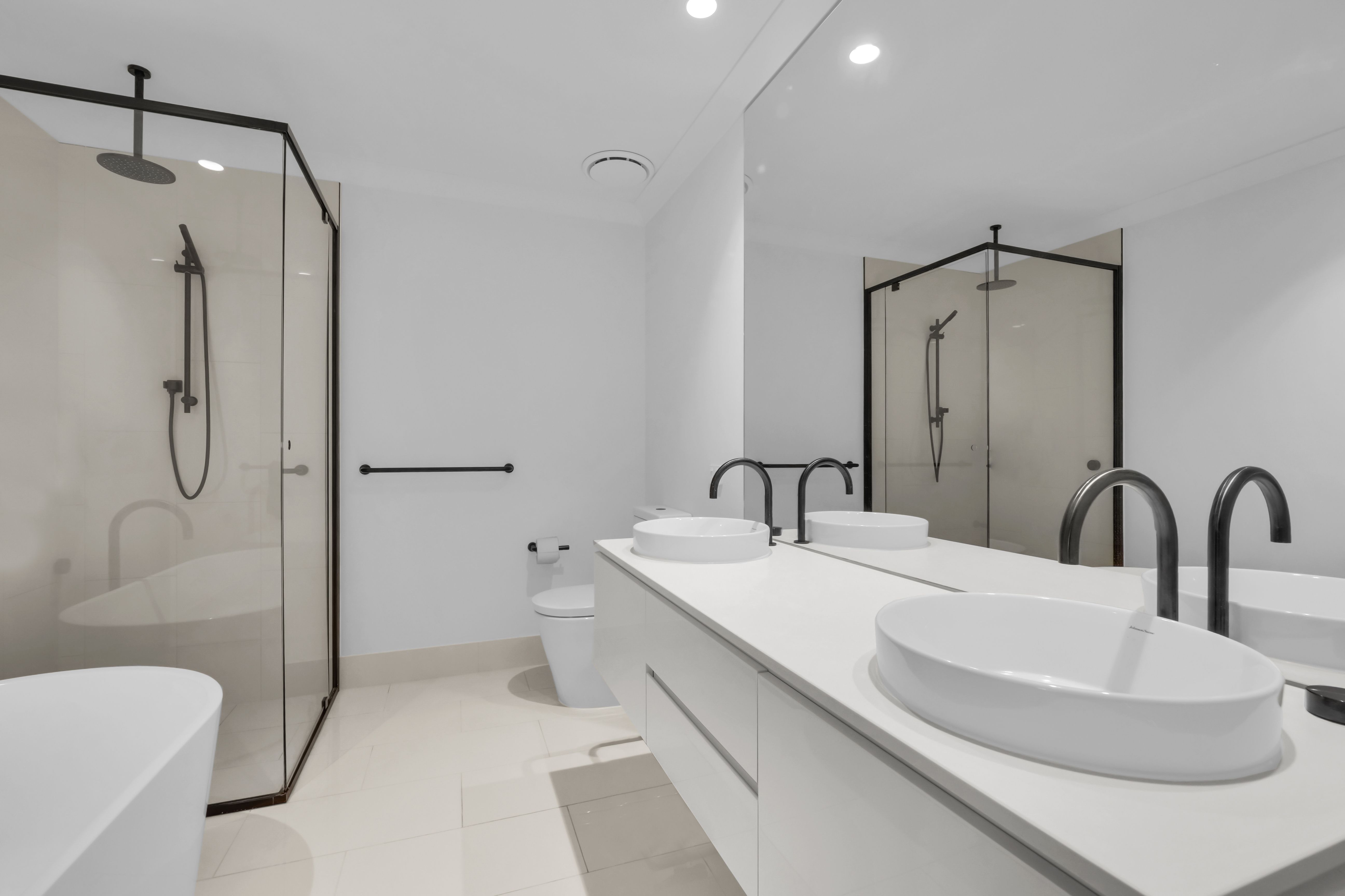 - Three bedrooms, master bedroom with walk-in robe and full ensuite featuring a freestanding bath and double vanity