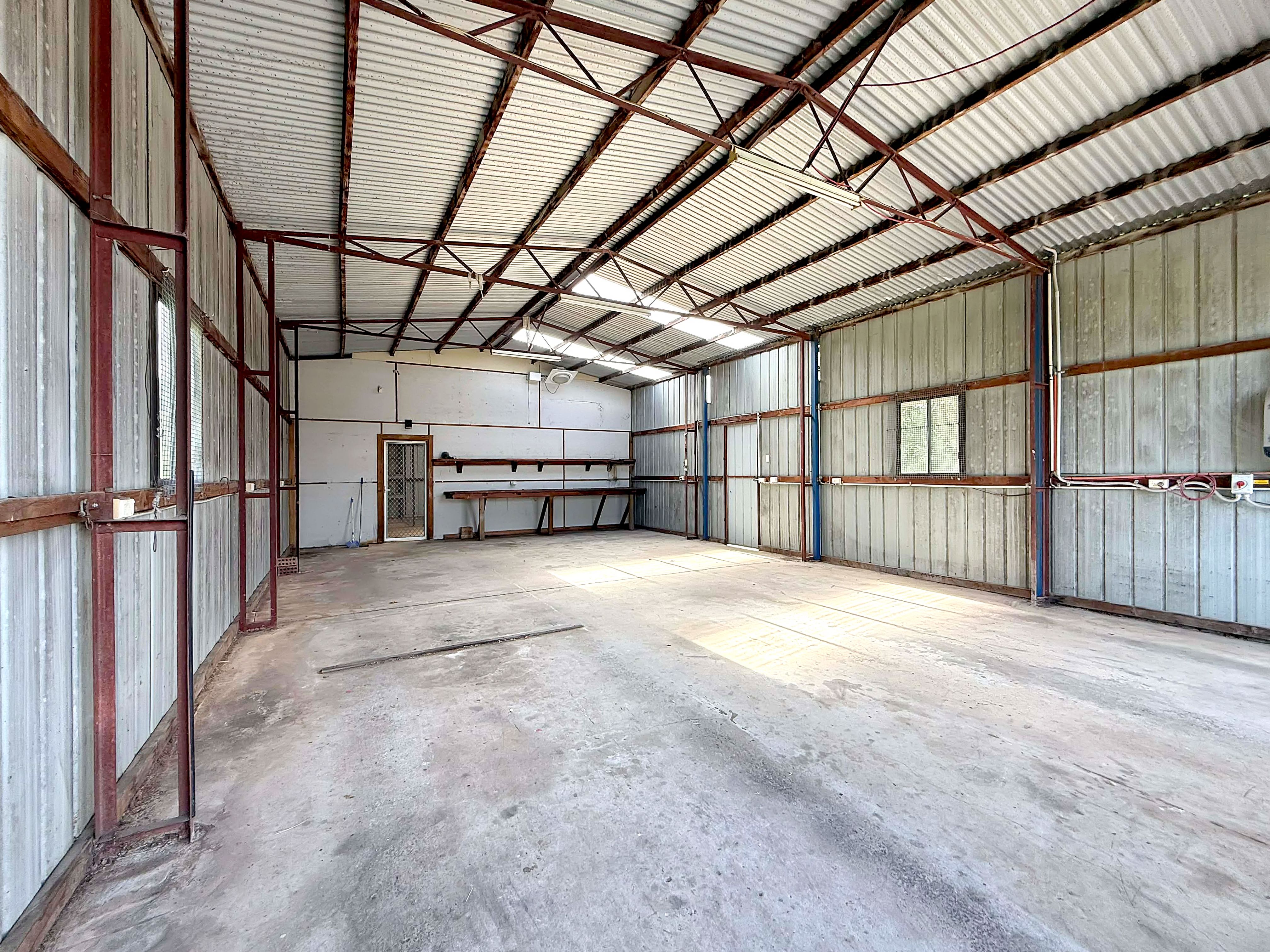 - Detached large 4 car shed with carport extension