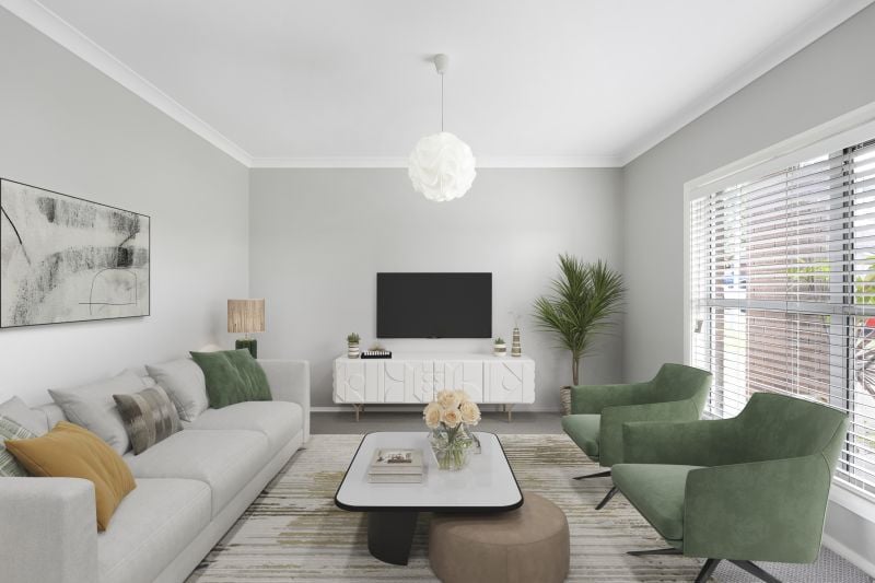 - Showcasing an open plan living and dining areas flowing seamlessly to outdoor entertaining area