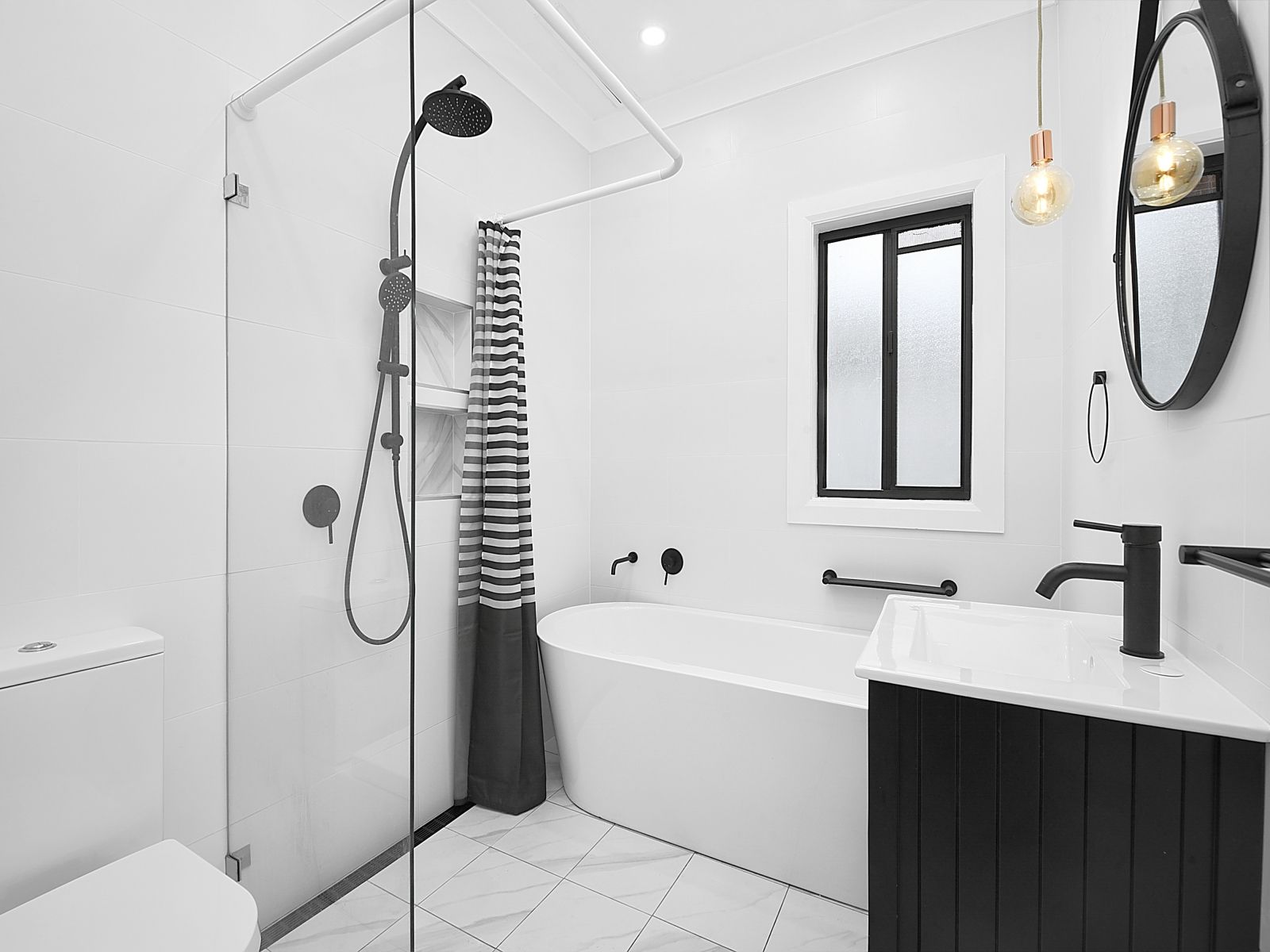 - Renovated bathroom with separate shower and bath