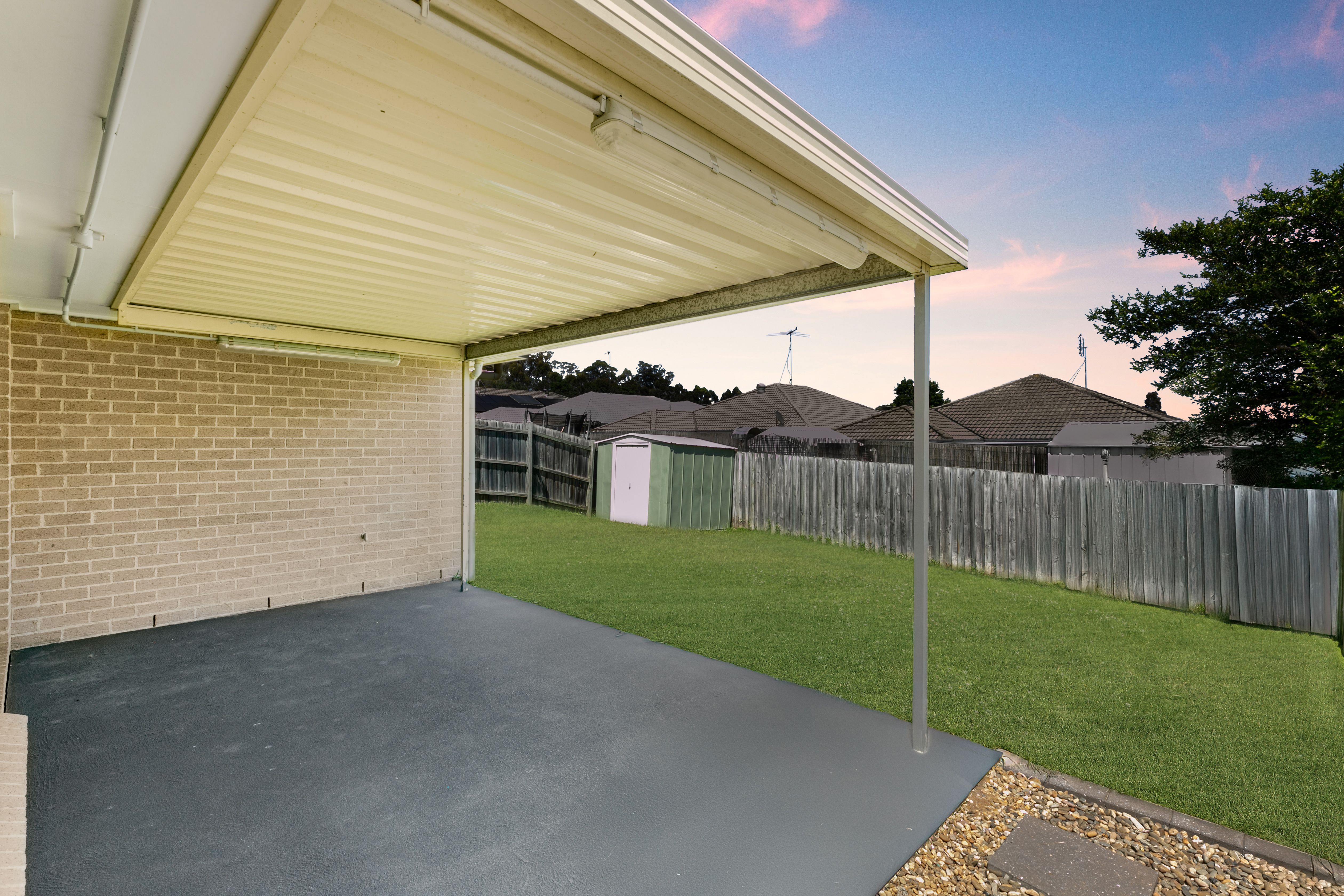 - Undercover alfresco area overlooking the backyard, garden shed and rainwater tank