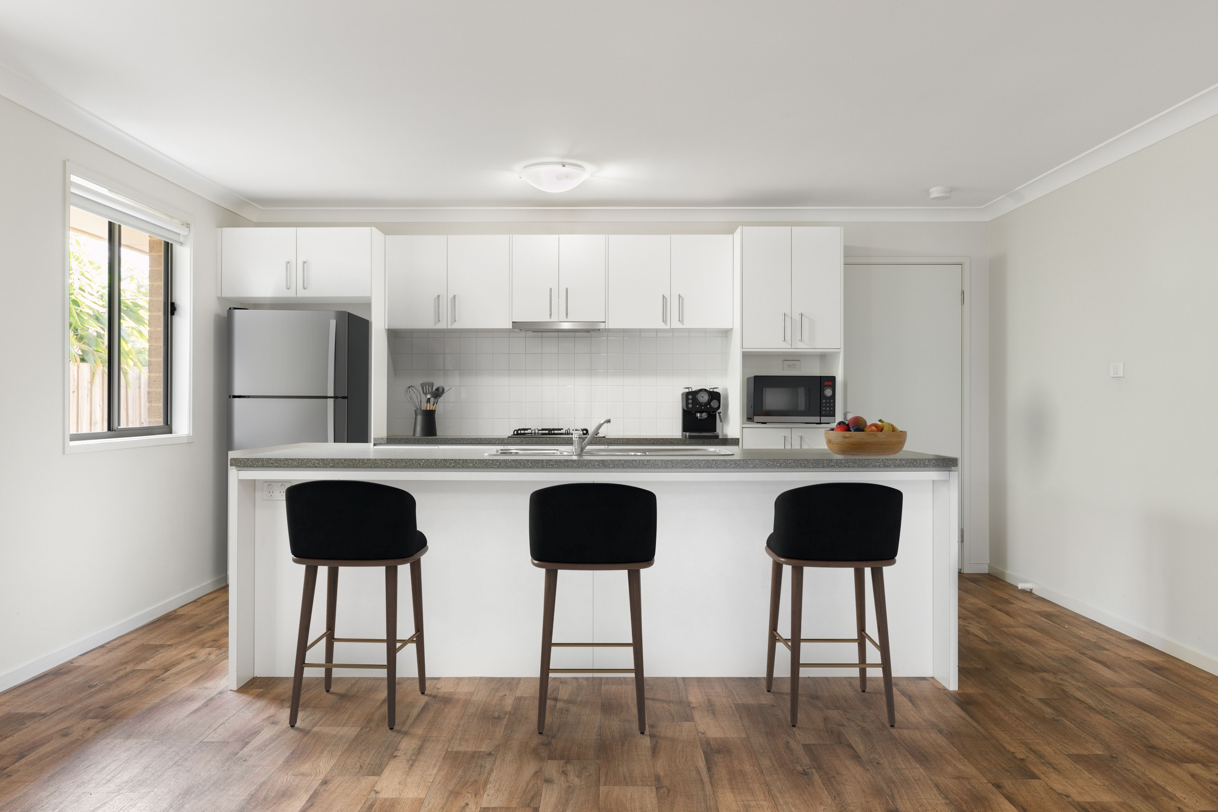 - Generous kitchen with ample bench space, gas cooking and storage space