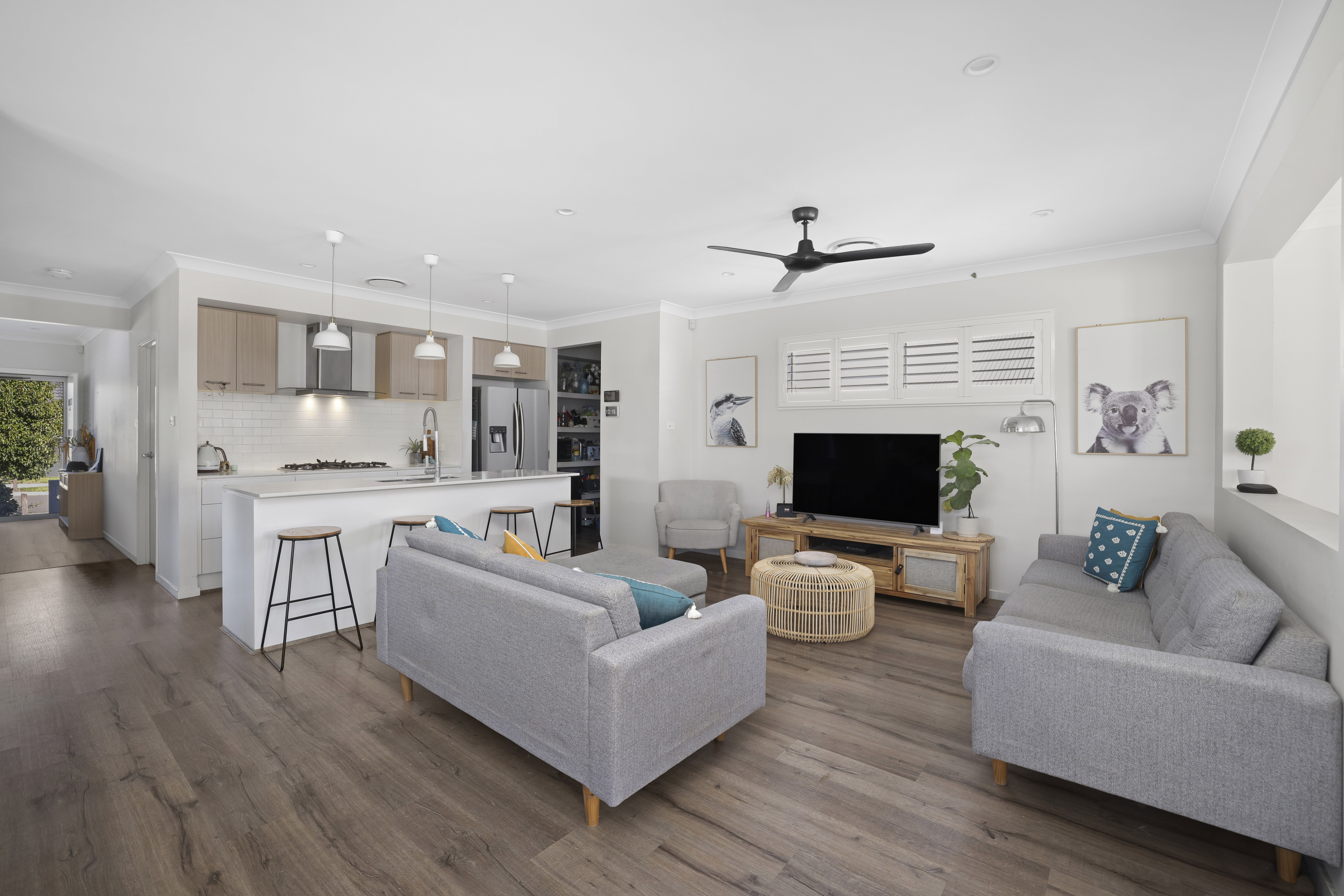 - Floorboards throughout, downlights to living areas and ceiling fans to bedrooms
