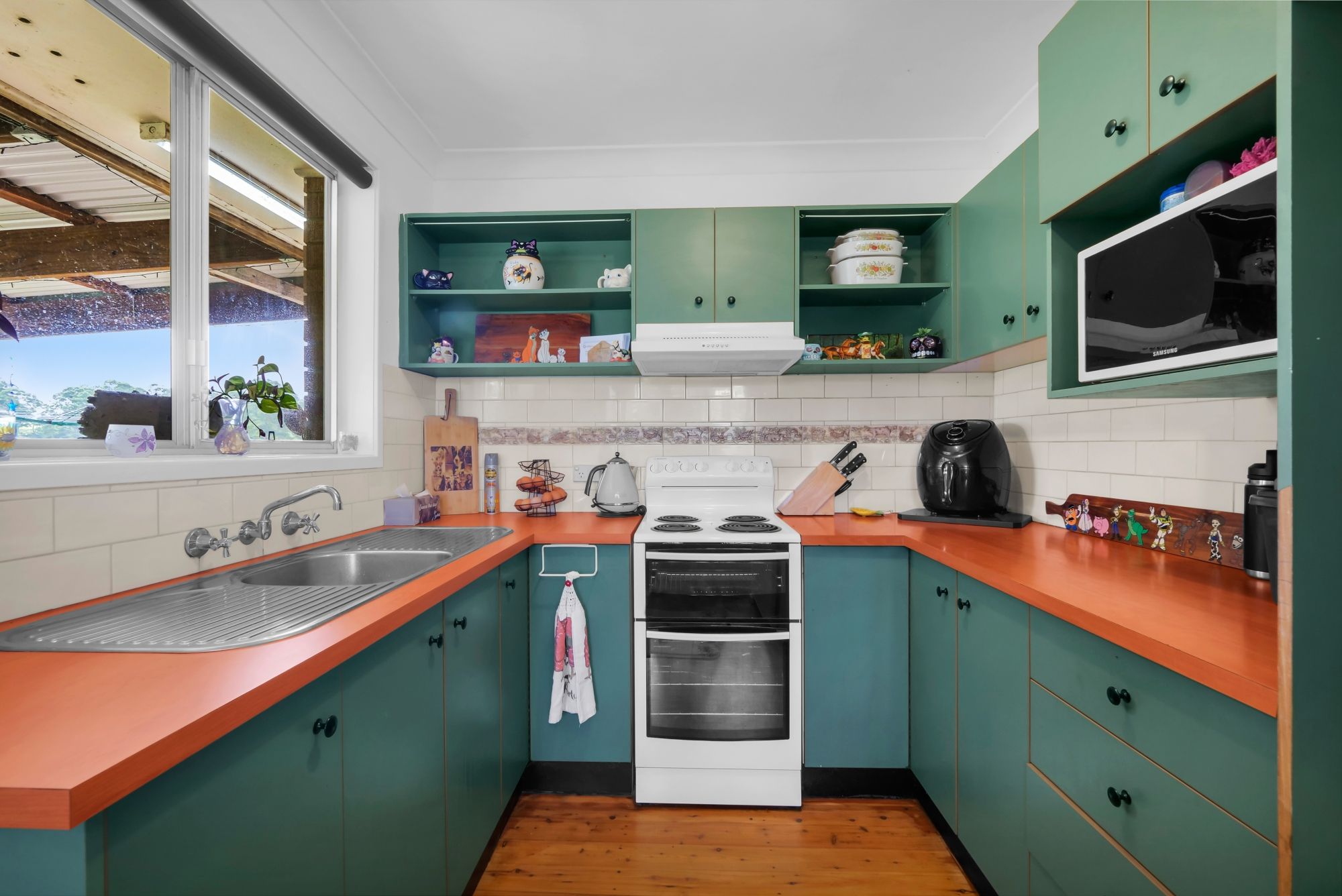 - Country-style kitchen with electric cooking and rangehood
