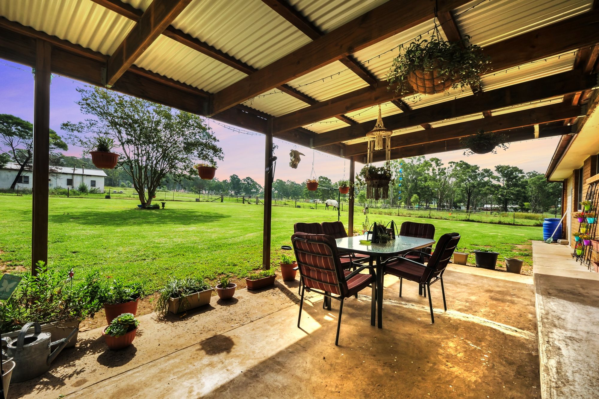 - Covered entertaining area with stunning outlook of the land
