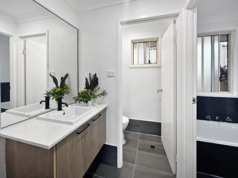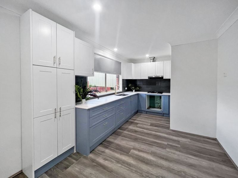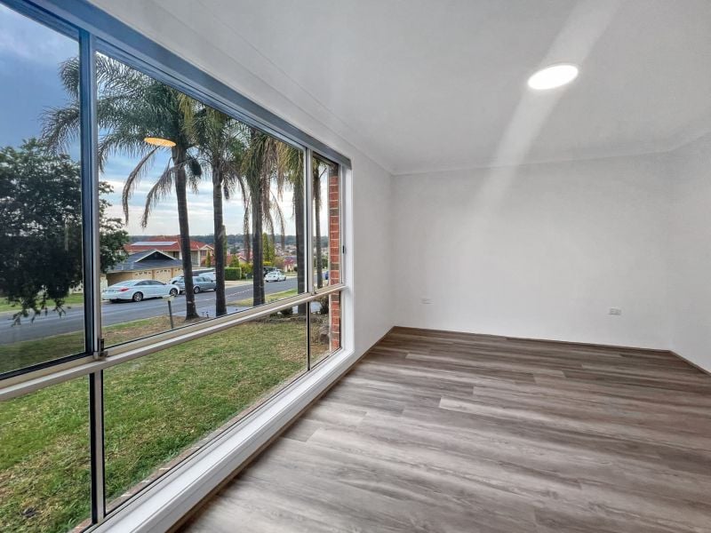 One of the best streets in Rosemeadow, on the high side of the street, backing Noorumba reserve, close to parks and local schools. This renovated property has had a fresh coat of paint throughout, new flooring, blinds and lighting. Offering spacious living, consisting of open plan lounge and dining with split system air conditioner. Modern kitchen with good cupboard storage and new appliances. Separate meals / family area off the kitchen which creates another great living. Main bedroom with walk in robe and ensuite access. The bathroom has separate bath, shower, toilet, and vanity area, making the family using the one bathroom easy. Two other bedrooms offer build in robes. Internal laundry, also updated with new cabinetry, good sized single drive through garage. The icing on the cake has to be the extra generous backyard, great sized pergola for outdoor entertaining and no rear neighbours giving you a good sense of privacy. [Less]