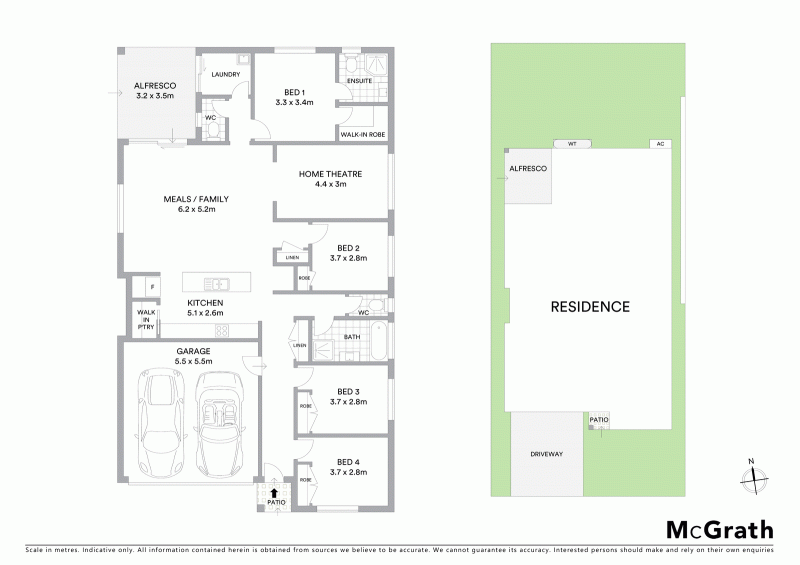 - Automatic double garage, internal entry to home