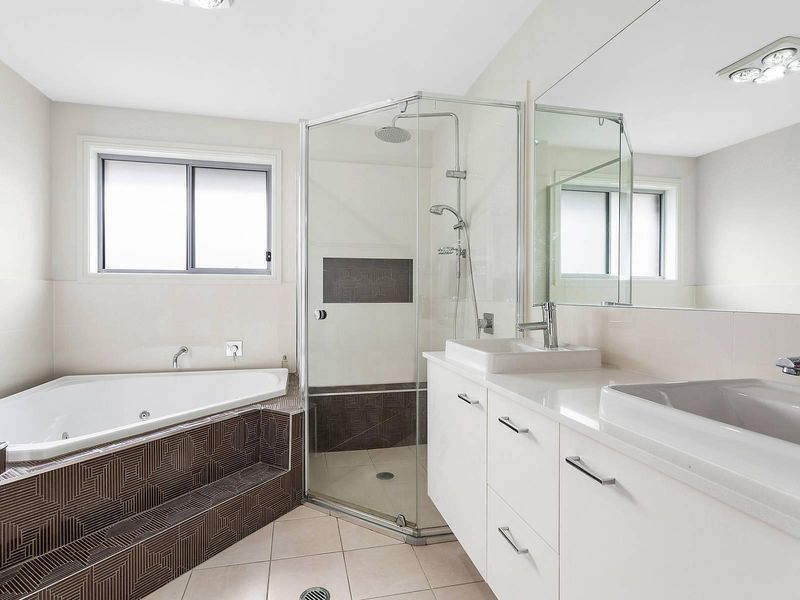 This large family home is perfect to accommodate the growing or extended family. Offering 4 bedrooms upstairs, all of large proportions. Main bedroom with walk in robe and ensuite with large spa bath. All other bedrooms have built in robes and would accommodate king sized beds. 5th bedroom downstairs with built in robe and separate full bathroom. Media room, office or lounge room downstairs, along with large open plan family and dining off the kitchen. The kitchen has lots of cupboard space, stone ... [More]