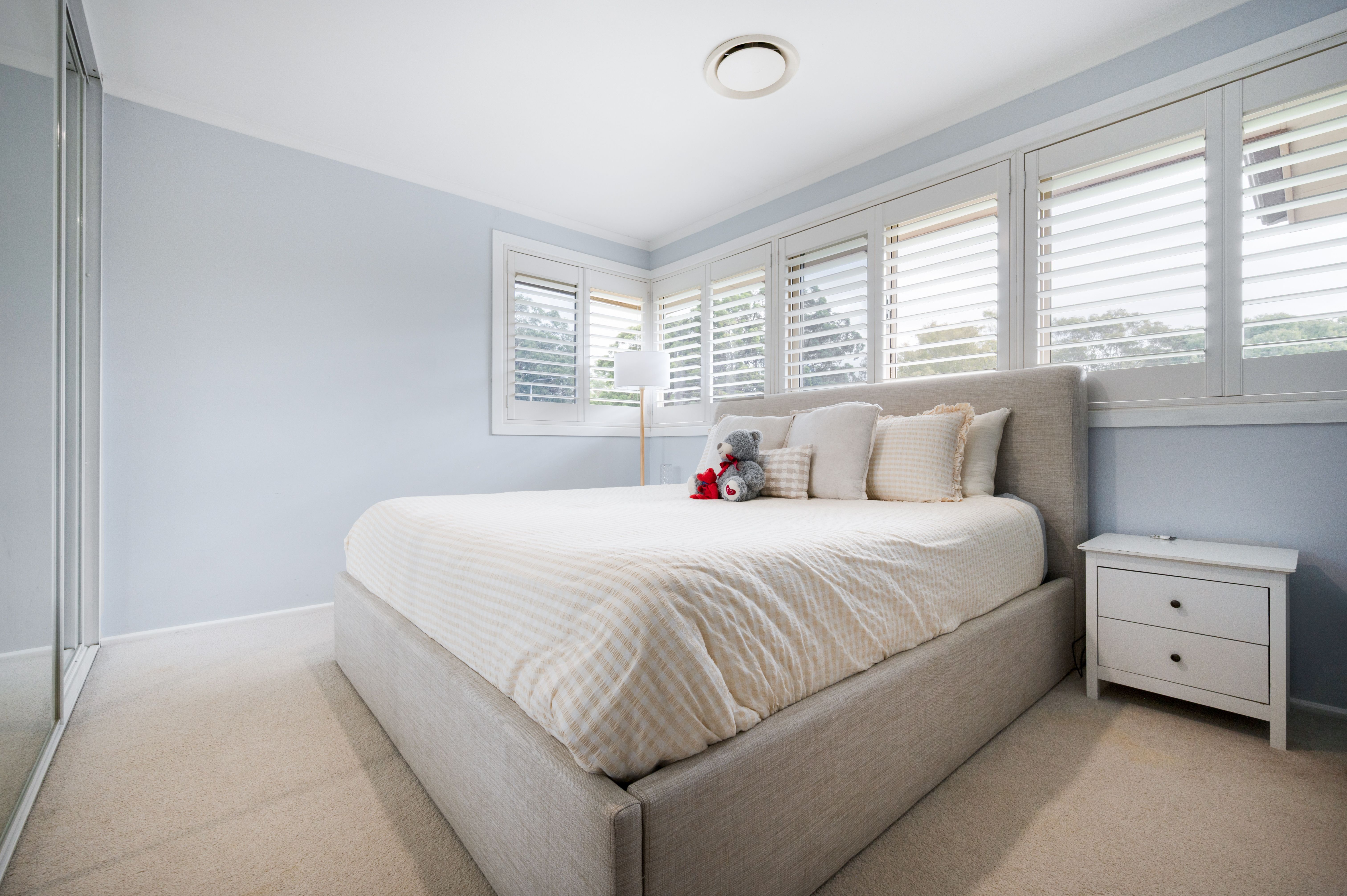 - Three well sized bedrooms with built-in wardrobes, carpet and sleek plantation shutters to windows
