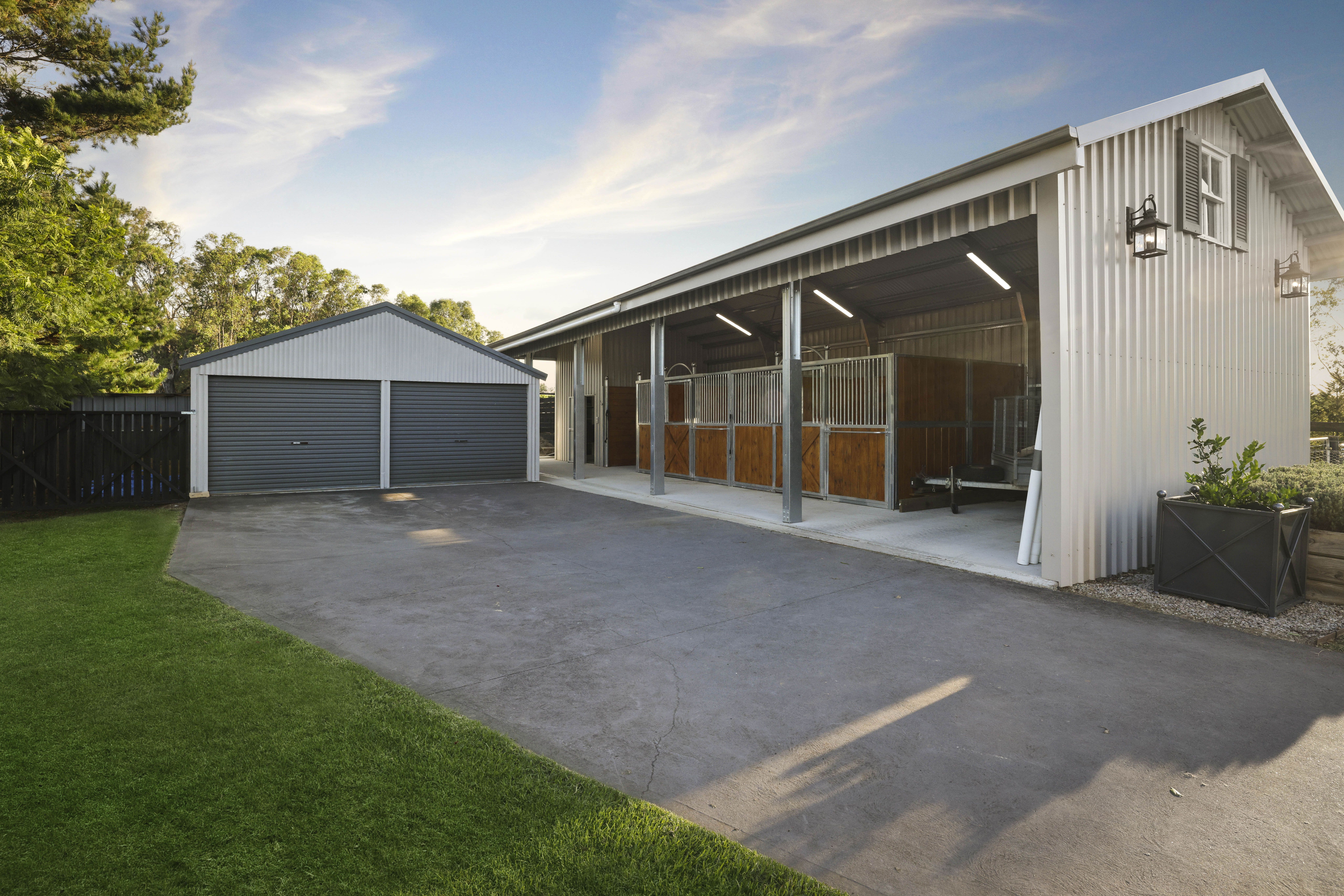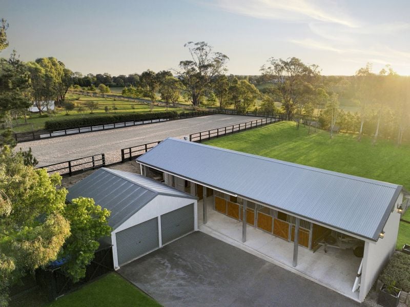 - Two custom built steel and timber Anvil stables, custom dividers, concrete flooring and lined with quality Regulpol Equiline rubber mats