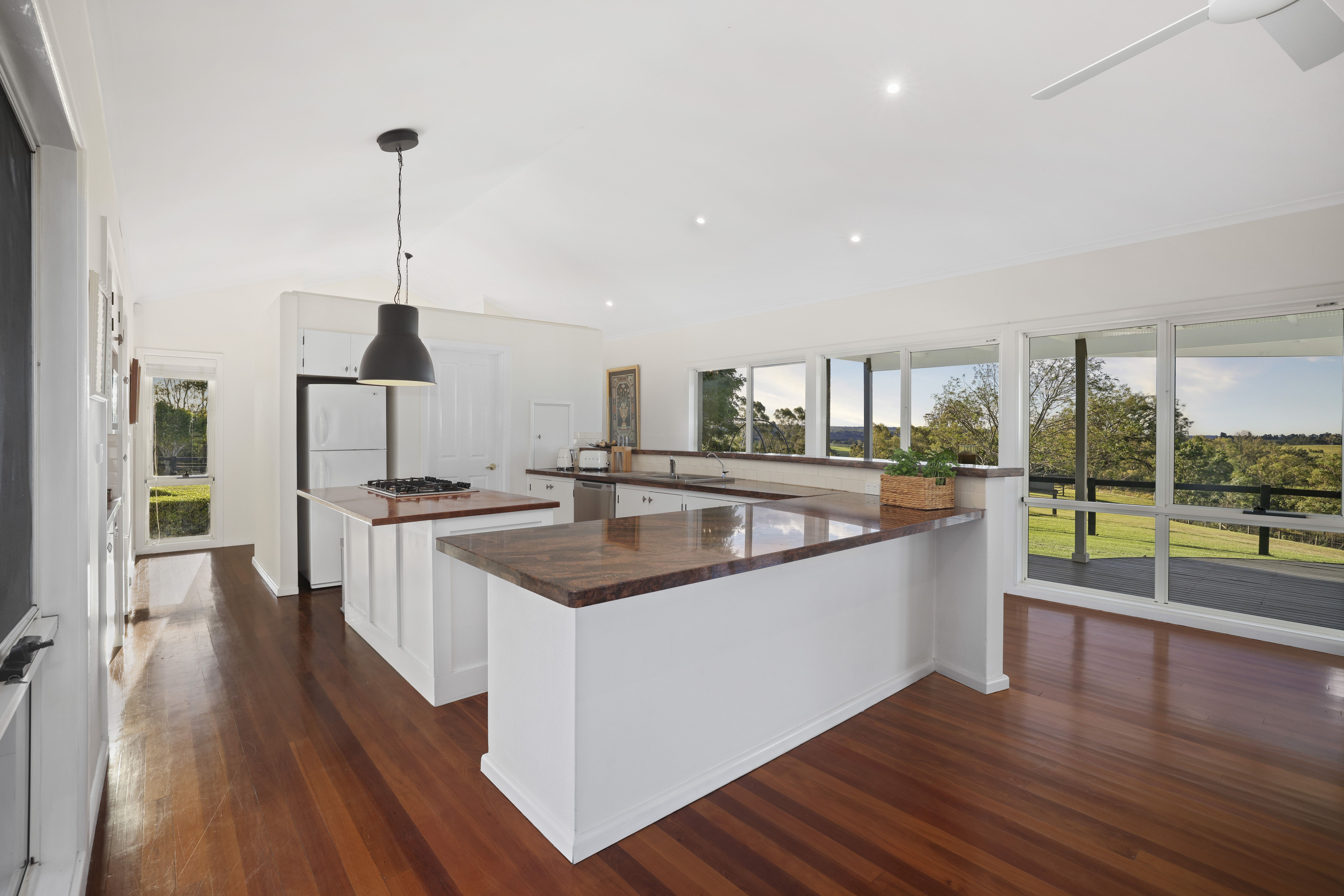 - Free-flowing open plan formal living/dining room, vaulted ceilings with fans and sweeping views