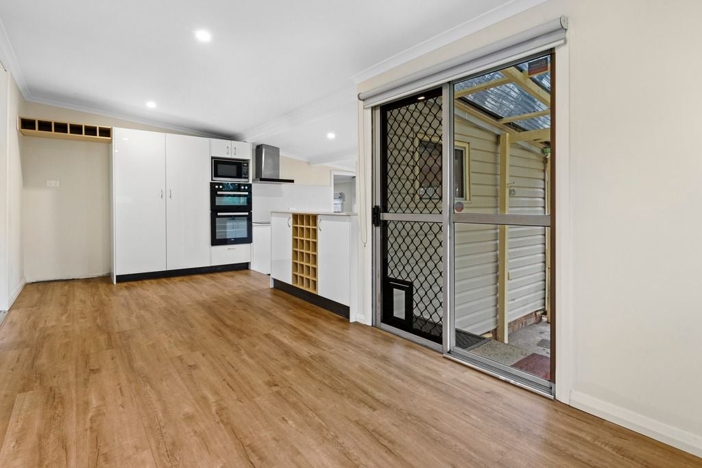 Flooring to lounge & separate kitchen meals areas has versatile vinyl flooring.