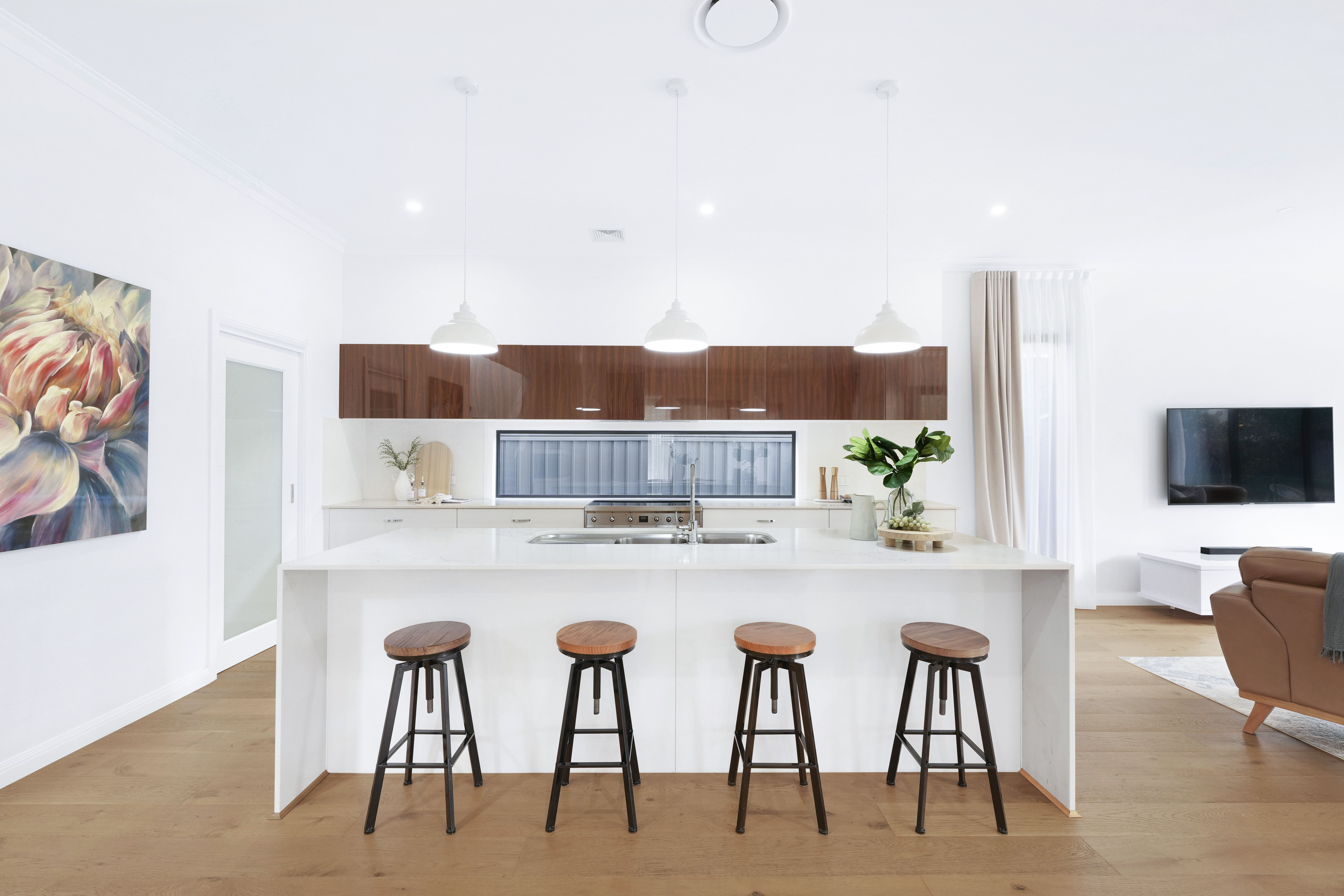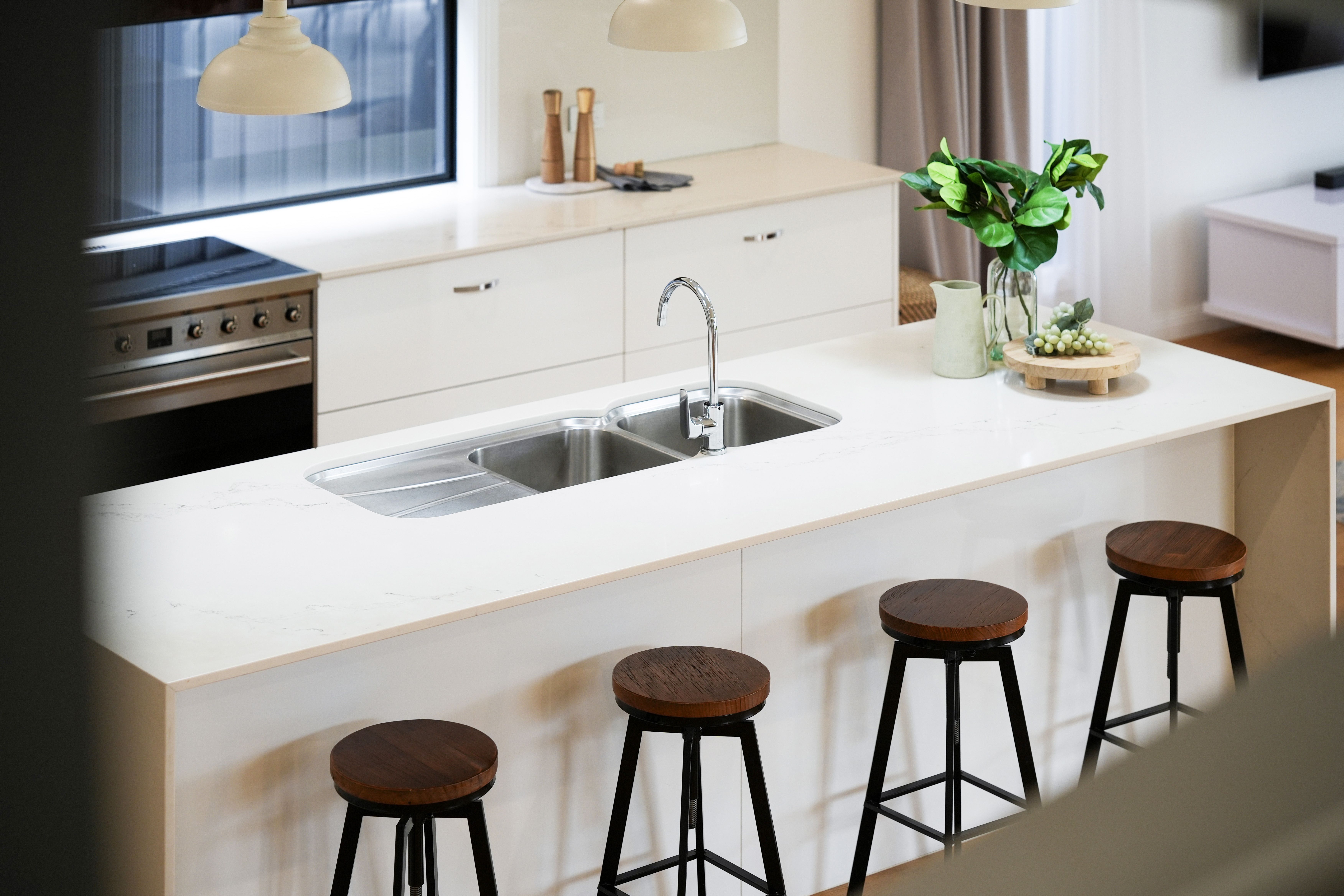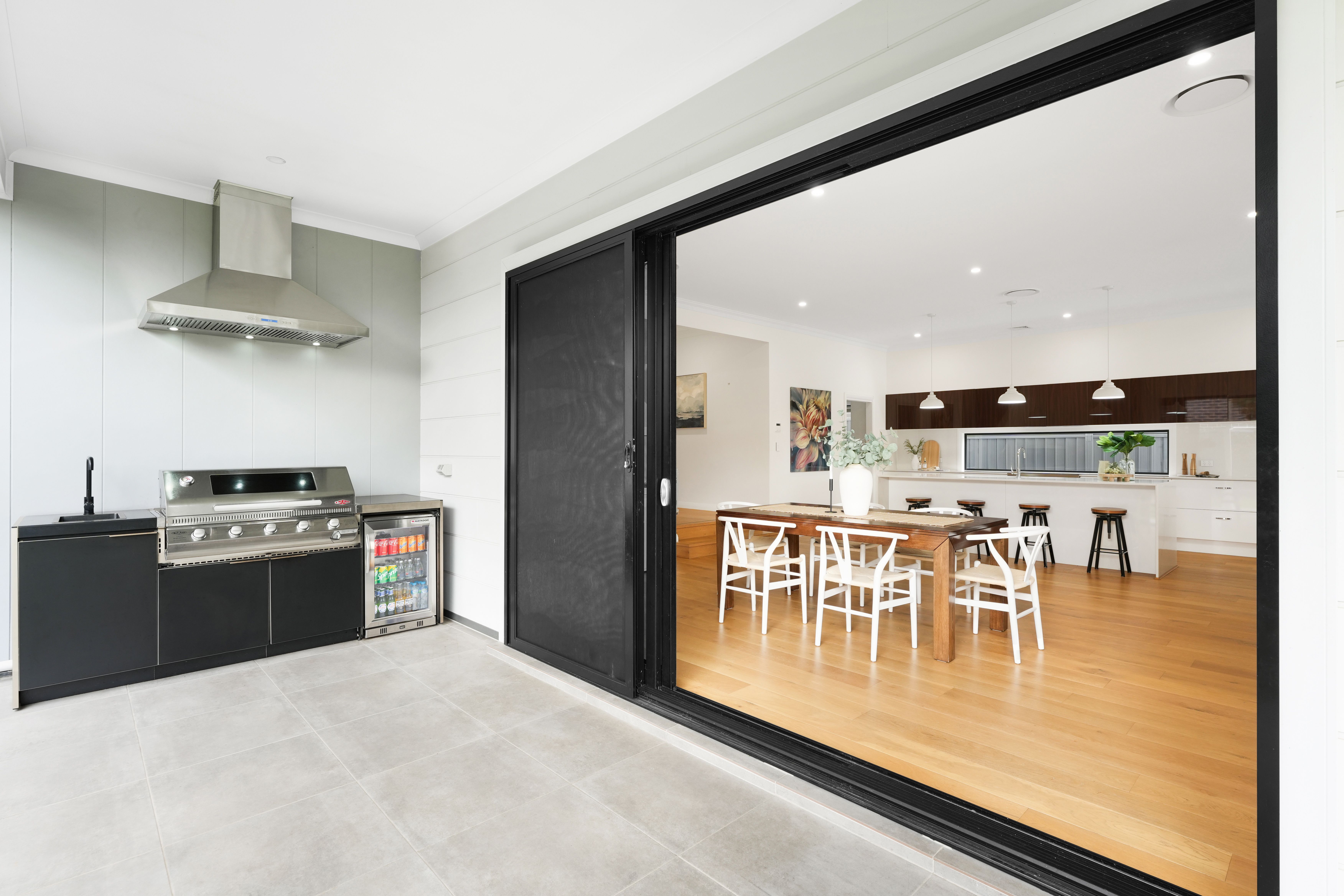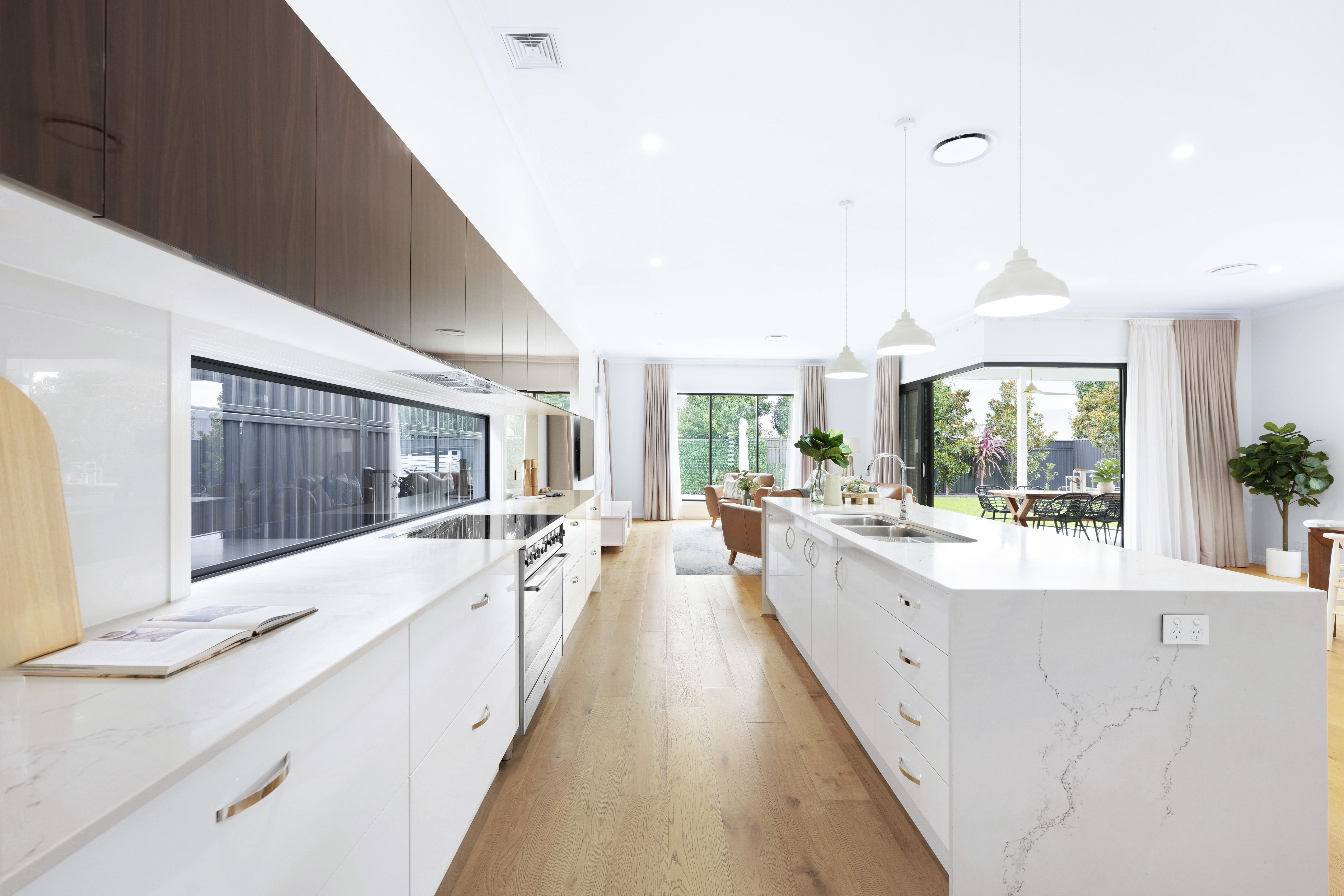 The heart of this home is its stunning kitchen. A culinary dream with quality Caesarstone Supernatural benchtops, 900mm Smeg cooking appliances, window splashback, a huge adjoining butlers' pantry with second sink, plumbed water for fridge, Bosche dishwasher and an array of storage