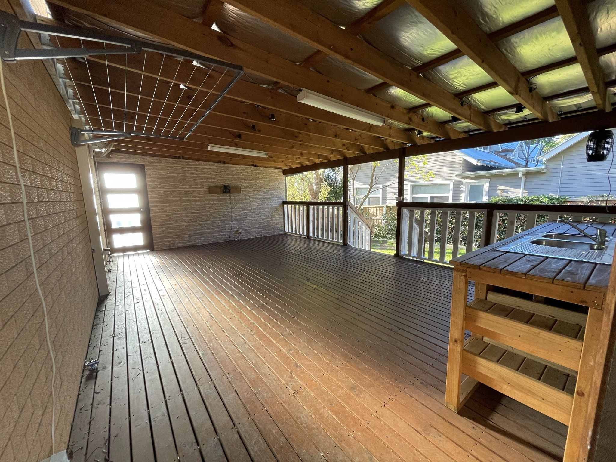 Large undercover entertaining area with built-in bench and sink. [Less]