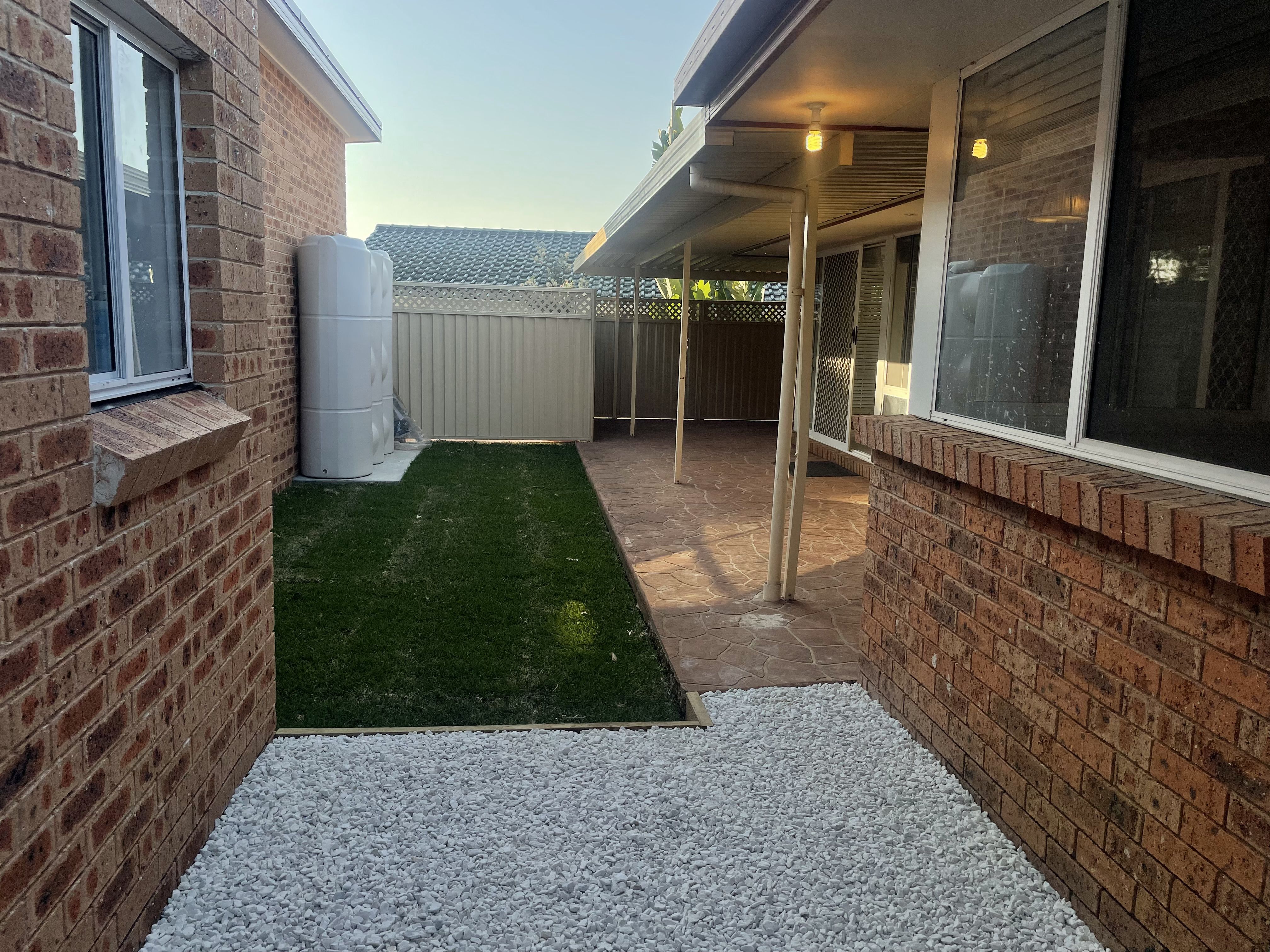 - Large pergola with small section of grass.